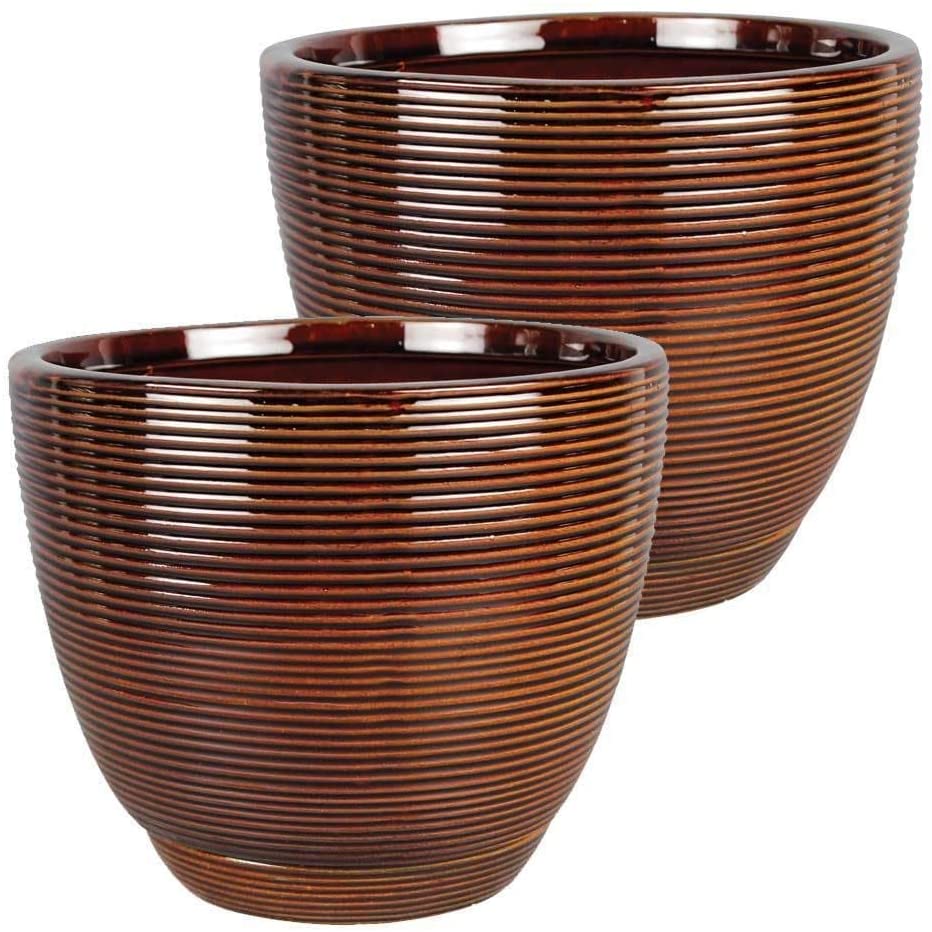 • 8" Planter 2-pk. Brown Bohemian Eclectic Round Ceramic
