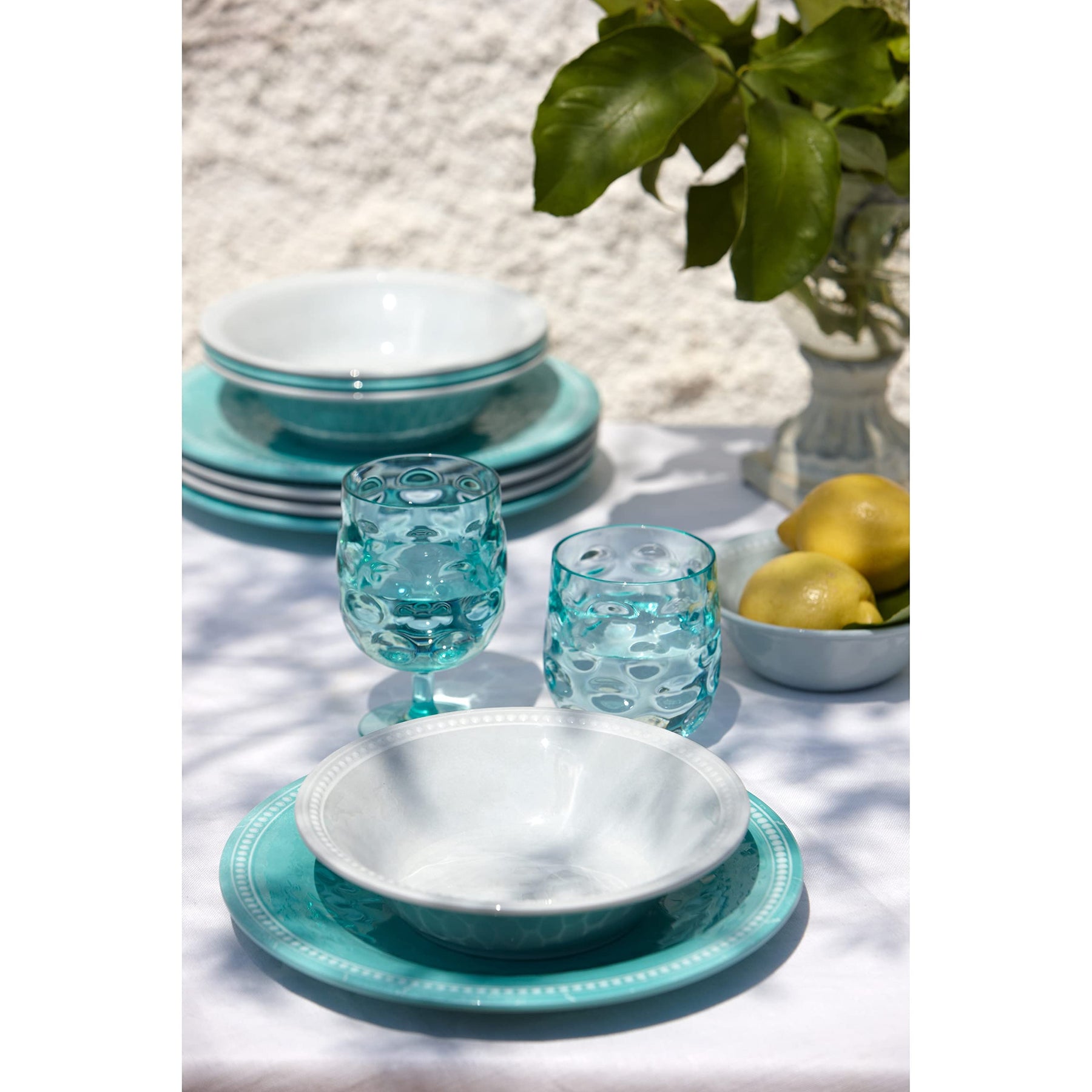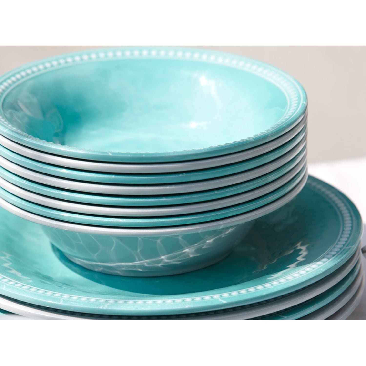 Aqua Dinner Plate Set Of 6 Turquoise Solid Casual Round Dishwasher Safe | 100% Melamine. Set of 6. Indoor/Outdoor Use. Design/Look : Casual. Material : Melamine. Type : Dinner Plate. Pattern : Solid. Color : Turquoise. Dishwasher Safe | Product Size: 10.63 In. L X 10.63 In. W.