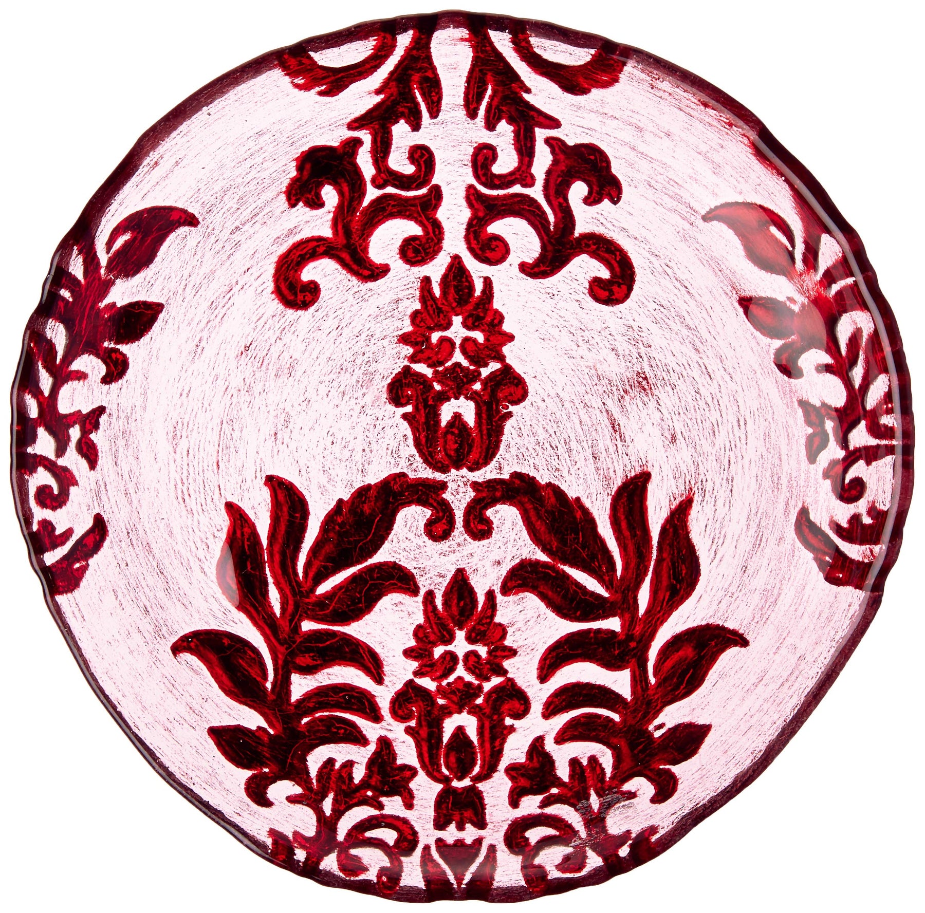Red Pomegranate Damask Canape Plate Red Velvet 6.5-Inch 1 Piece - Diamond Home USA