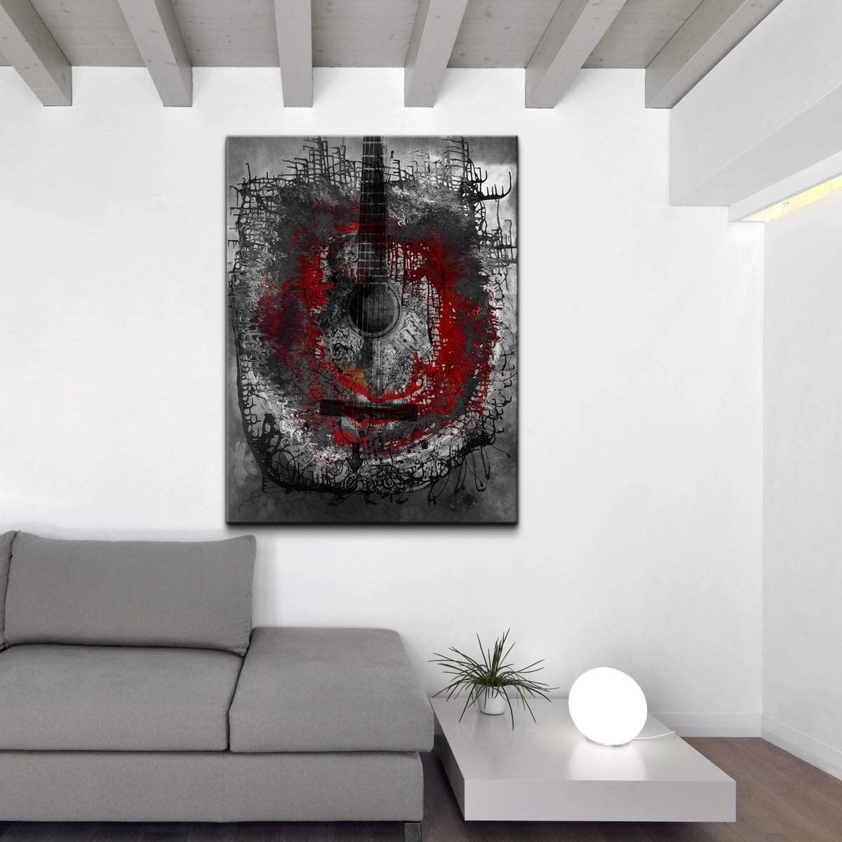 • Artist: Ready2HangArt. Title: Acoustic Guitar. Product type: Gallery Wrapped Canvas. Style: Contemporary. Format: Portrait. Size: Over-size. Outer dimensions: 30 inches high x 40 inches wide x 2 inches deep. Style : Modern & Contemporary. Subject : Music, Performing Arts, Portrait. Season or holiday : All Seasons.Product Color: Grey. Shape : Rectangle