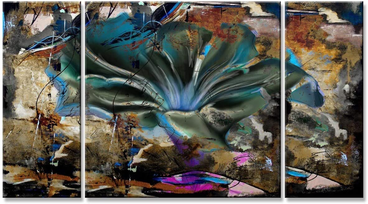 • Made in the U.S. by Ready2HangArt. Gallery-wrapped canvas set on a wood frame. Painted Petals LVIII Digital Art Print. Modern piece with a dark blue and grey flower lost in a storm of dark hues. Rectangle with Landscape Orientation. Features tones of Orange, Yellow, Blue, Violet, Grey, Sand and Black. Style : Modern & Contemporary. Subject : Floral. Set size : 3-piece Set. Season or holiday : All Seasons. Orientation : Landscape. Shape : Specialty.Size of Product: 1.5 In. X 54.0 In. X 30.0 In