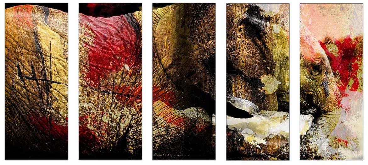 • Saddle Ink Elephant V' Canvas Wall Art Brown Modern Contemporary Rectangle