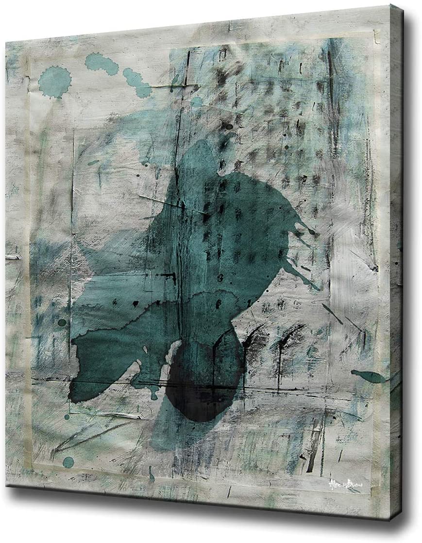 Abstract Wrapped Canvas Wall Art Black Blue Grey Industrial Modern