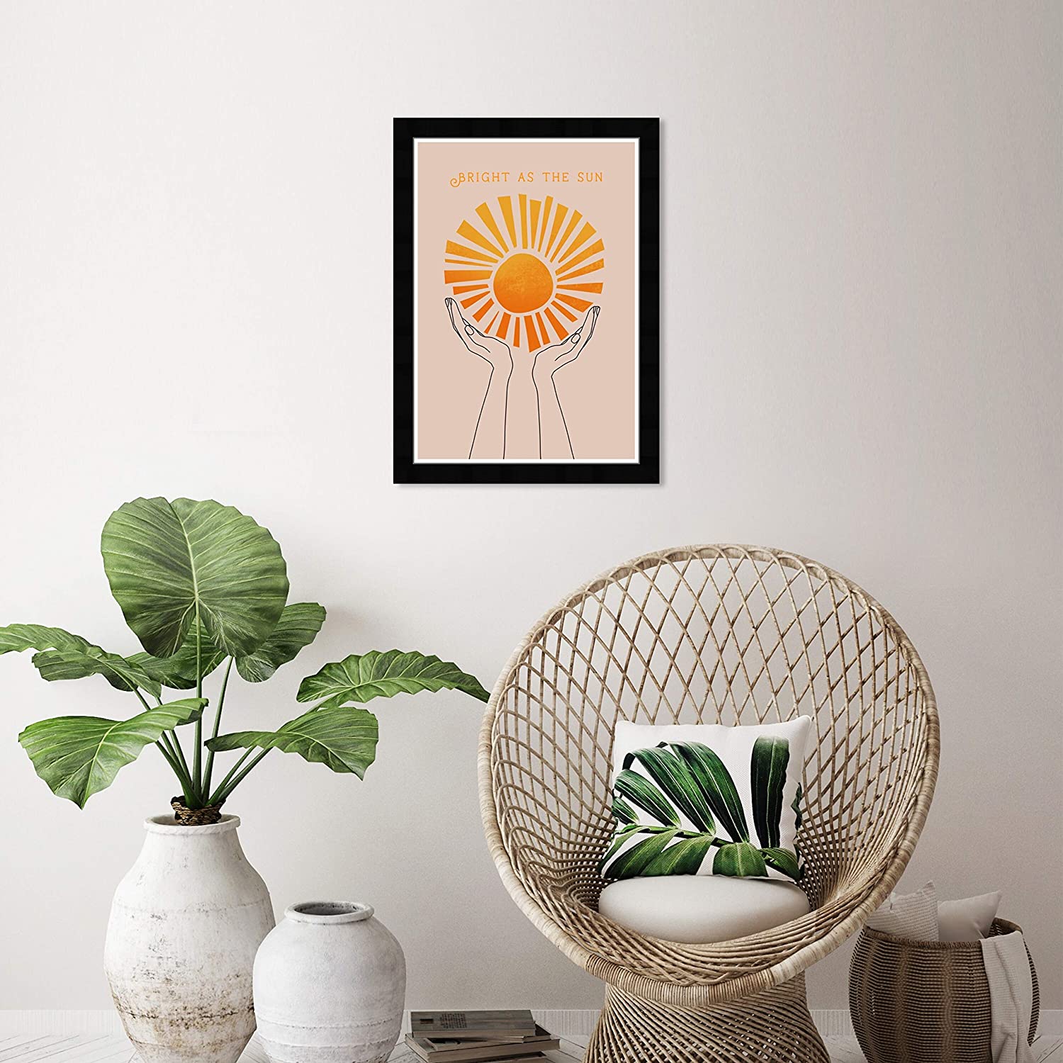 • Bright As The Sun' Typography And Quotes Wall Art Framed Print Motivational Sayings Orange Brown Bohemian Eclectic Modern Contemporary Rectangle