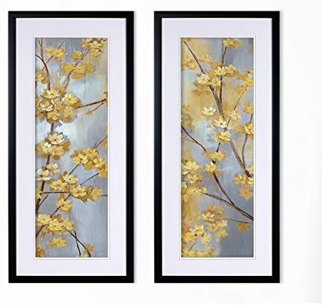 • Orientation : Horizontal. Set size : 2-piece Set. Frame color : Black. Frame material : Plastic. Subject : Floral. Made in USA. Shape : Rectangle