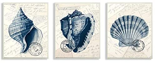 Vintage Blue Indigo Shells 3 Piece Wall Plaque Art 10 X 15 - Diamond Home USA