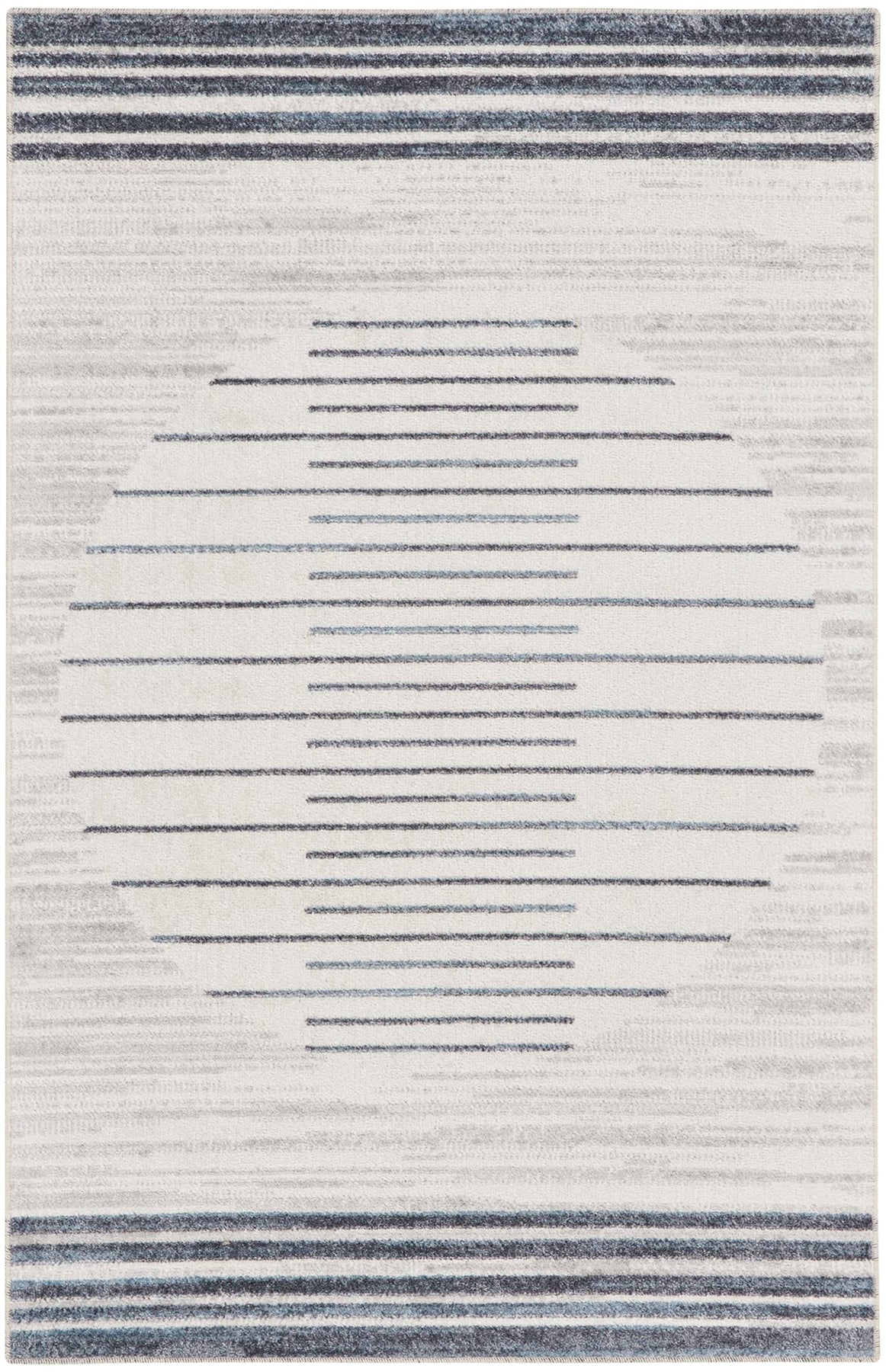 Nourison Astra Machine Washable Geometric Ivory Blue 3'3" x 5'