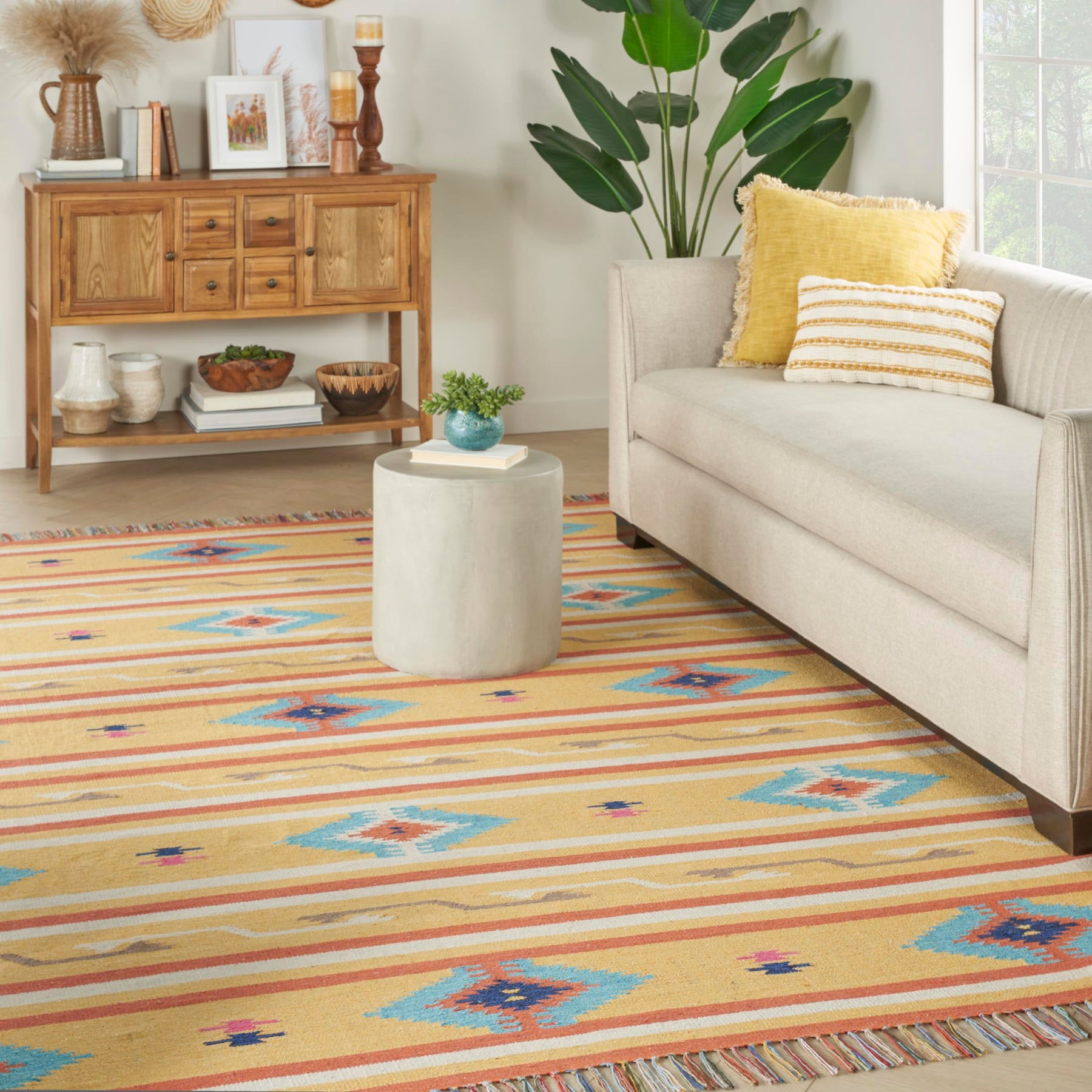 Nourison Baja Tribal Yellow 8' x 10' Area -ug Easy -Cleaning Non Shedding Bed - Diamond Home USA