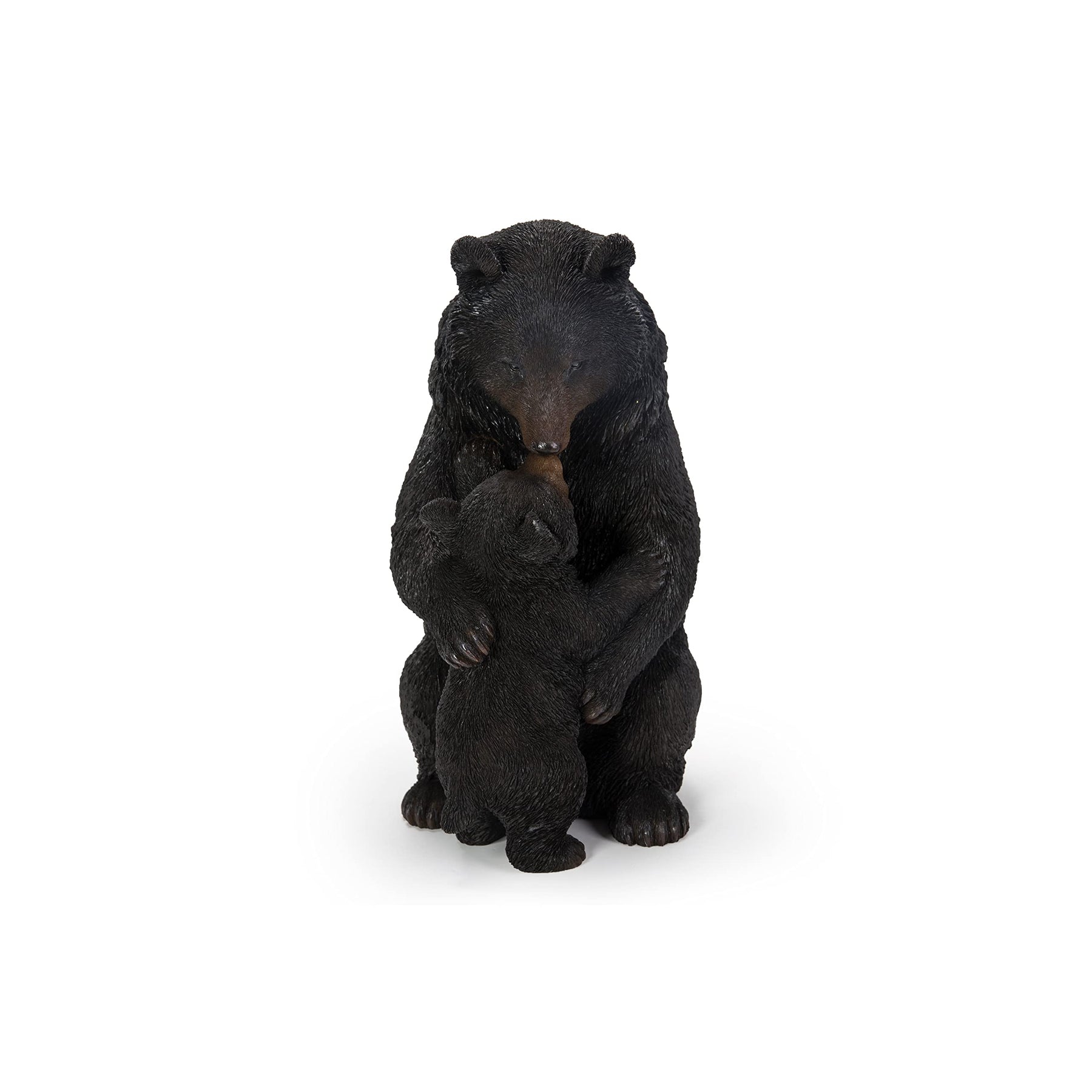 Cuddling Mother and Baby Bear Garden Statue Black Polyresin