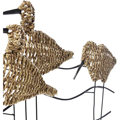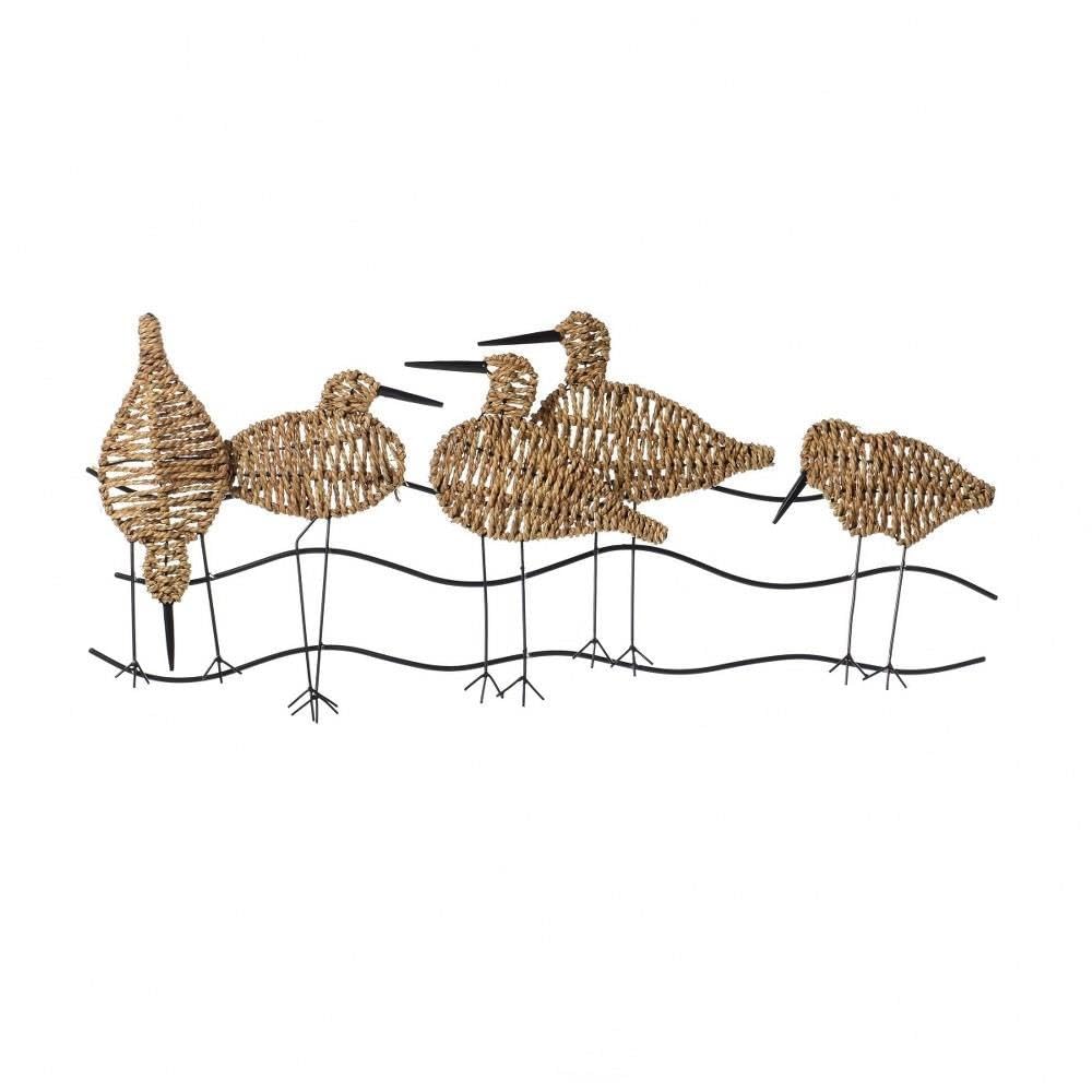 This playful, yet simplistic wall art features a flock of birds in a metal and natural seagrass weaving. The simplistic design and minimal use of color evoke relaxation and comfort in every style of home. This can be enjoyed by guests and family members when placed in main areas like the dining room and living room. Metal wall art with seagrass weaving Wall art finish: Natural Woven Seagrass, Silver Metal Wall art material: Woven Seagrass, Iron Metal Frame type: Frameless Install orientation: Horizontal.