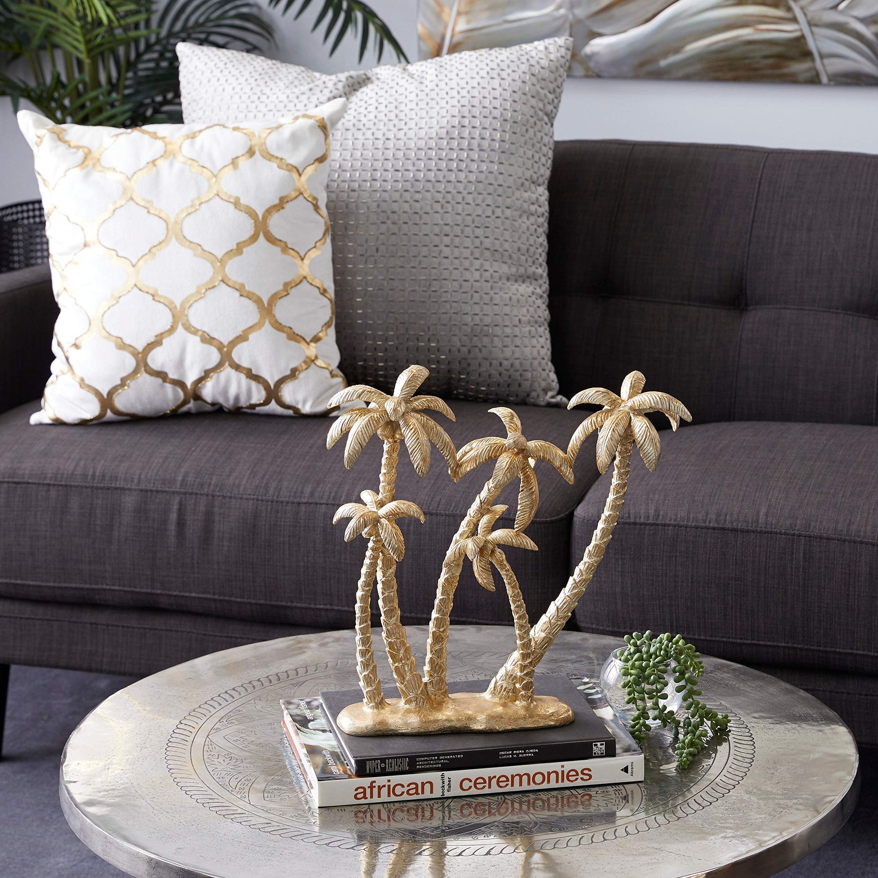 Gold Polyresin Coastal Palm Tree Sculpture 16 X 15 5