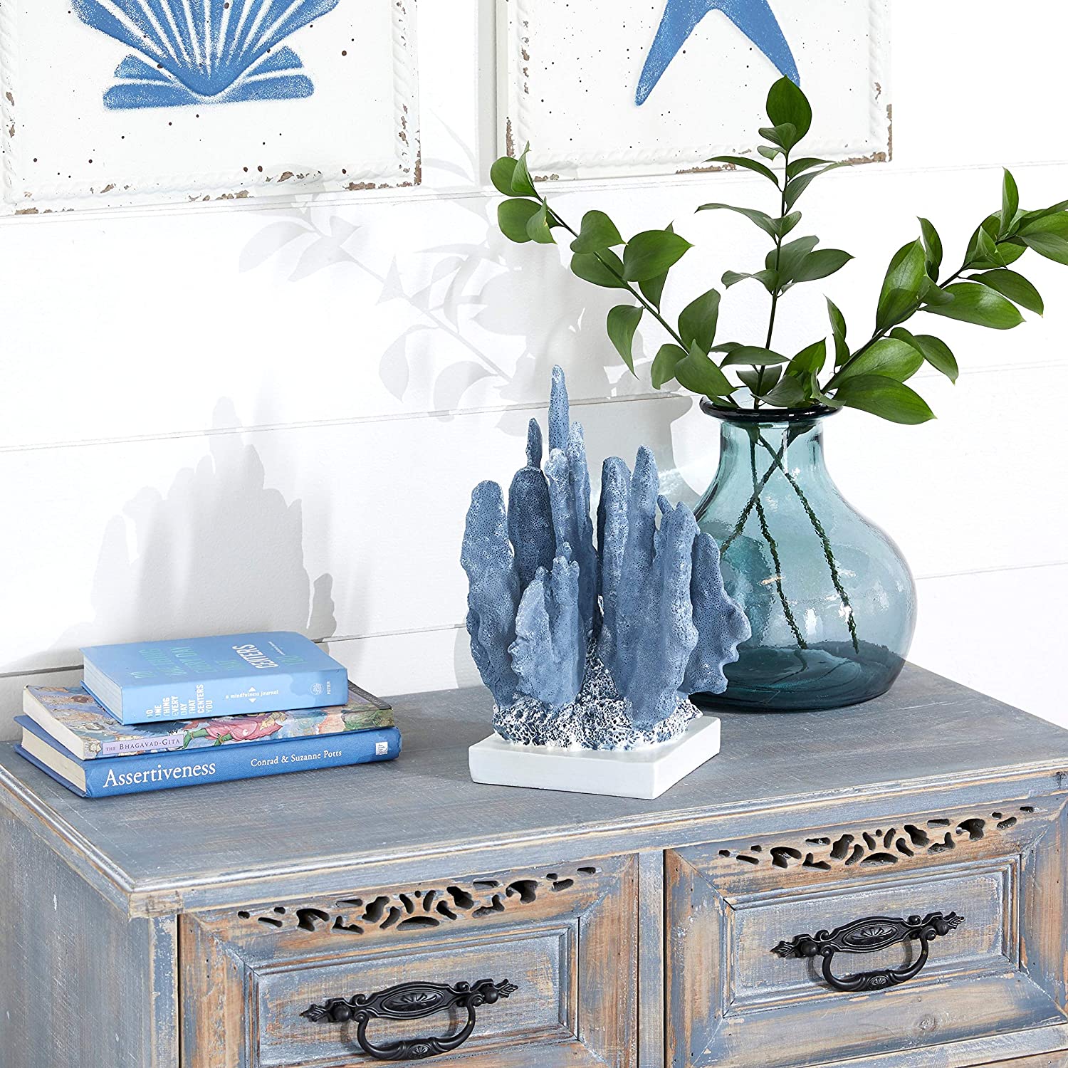 Powder Blue Resin Coral Sculpture White Rectangular Base 7 X 6 10 - Diamond Home USA