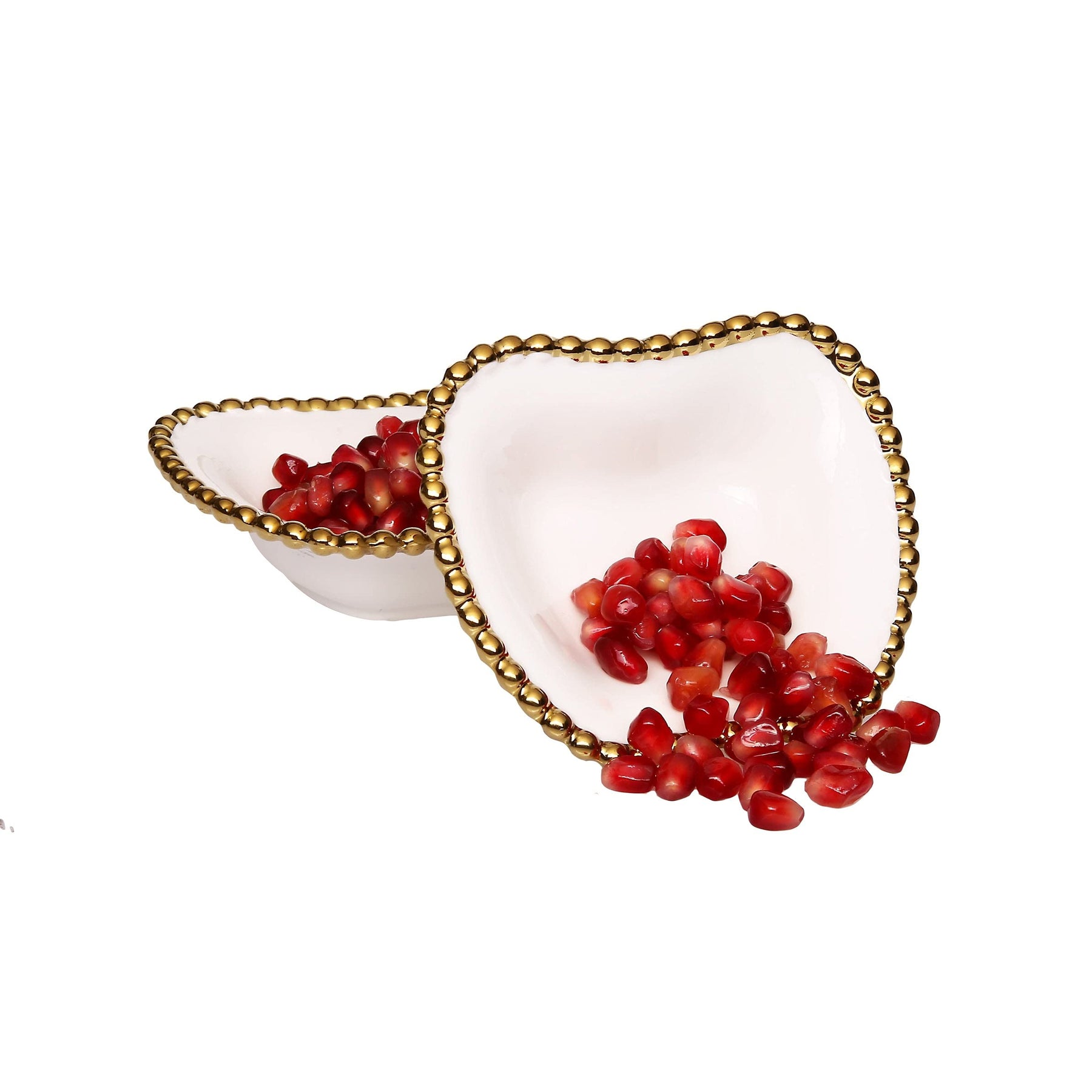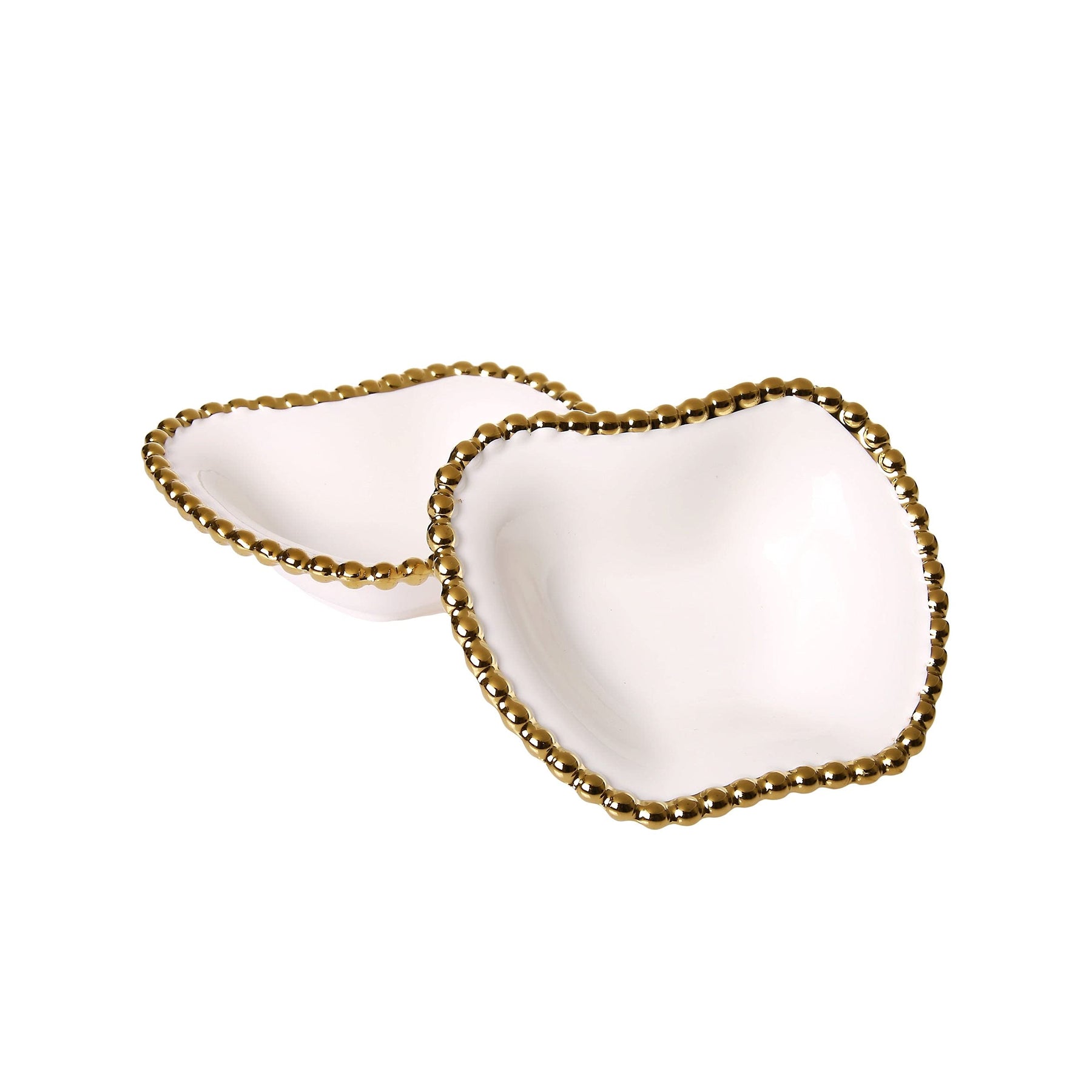 9.5" l Set Of 2 Gold White Porcelain Apple Shaped