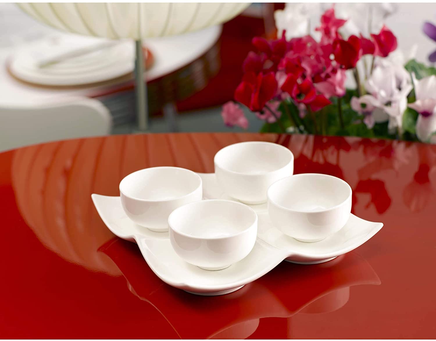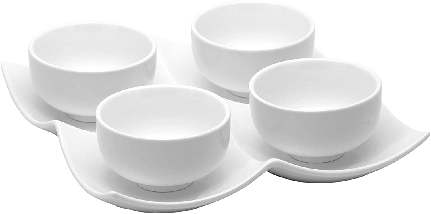 Vanilla 4 3" Bowls W/Tray 8" 4oz White Solid Traditional