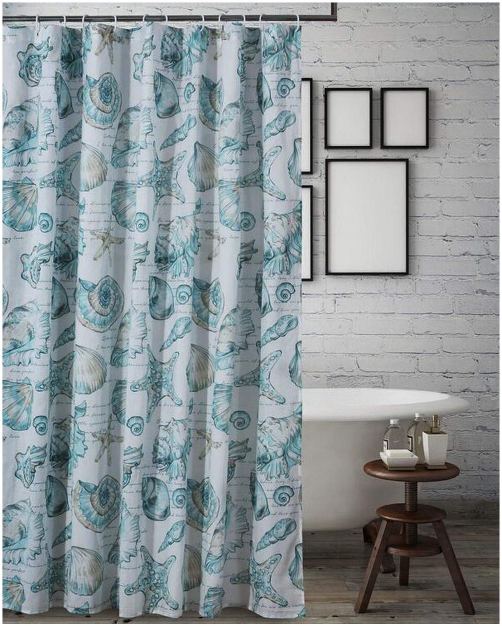 Finely Stitched Coastal Inspired Print Fabric Polyester Shower Curtain Aqua