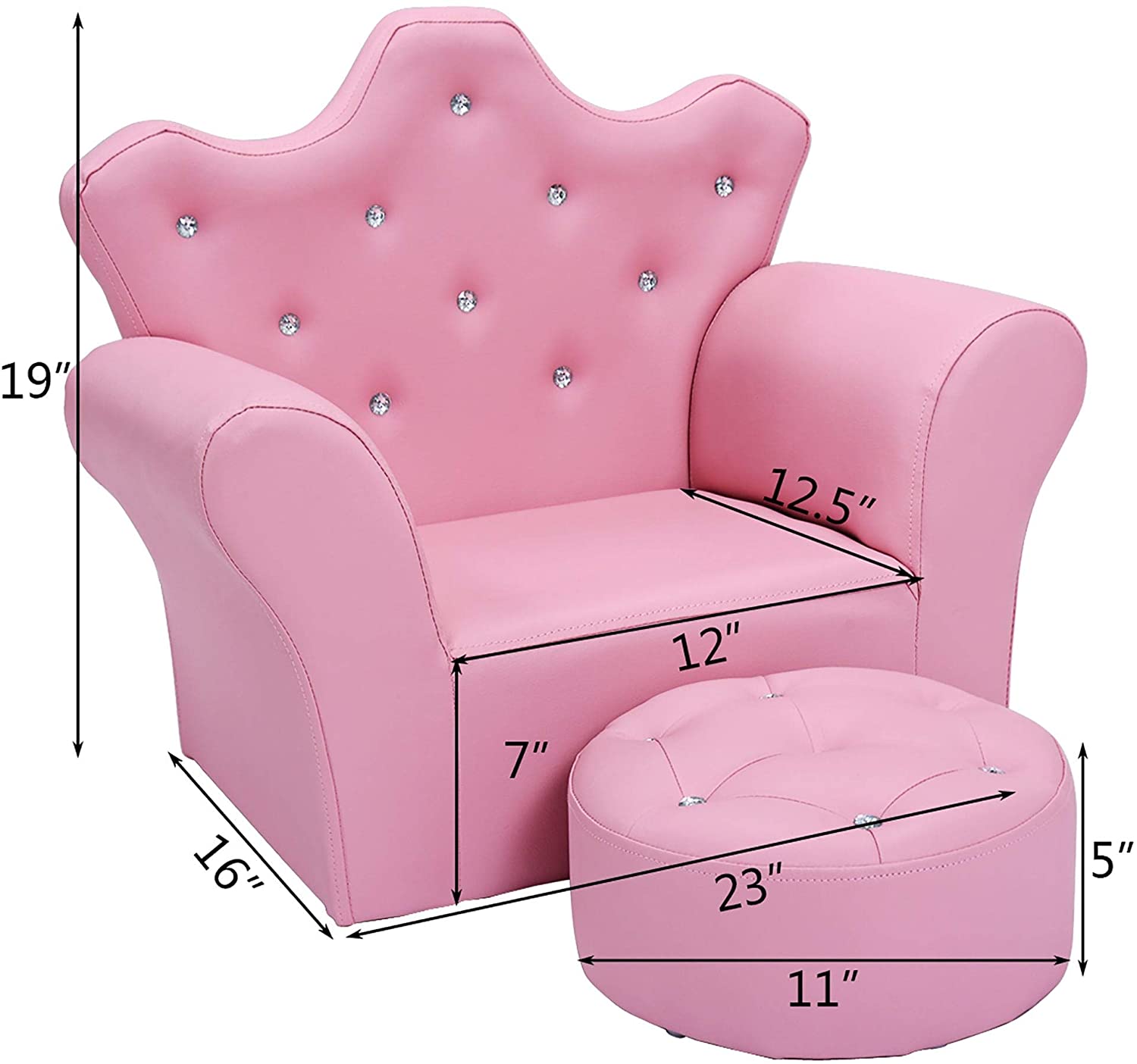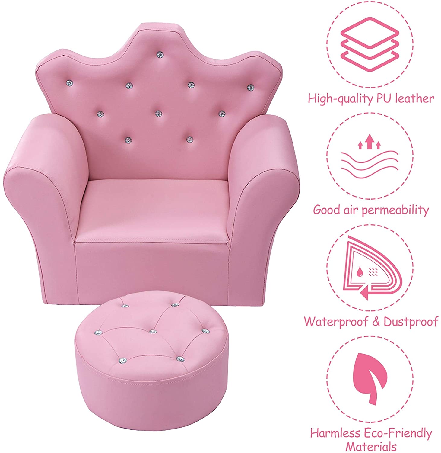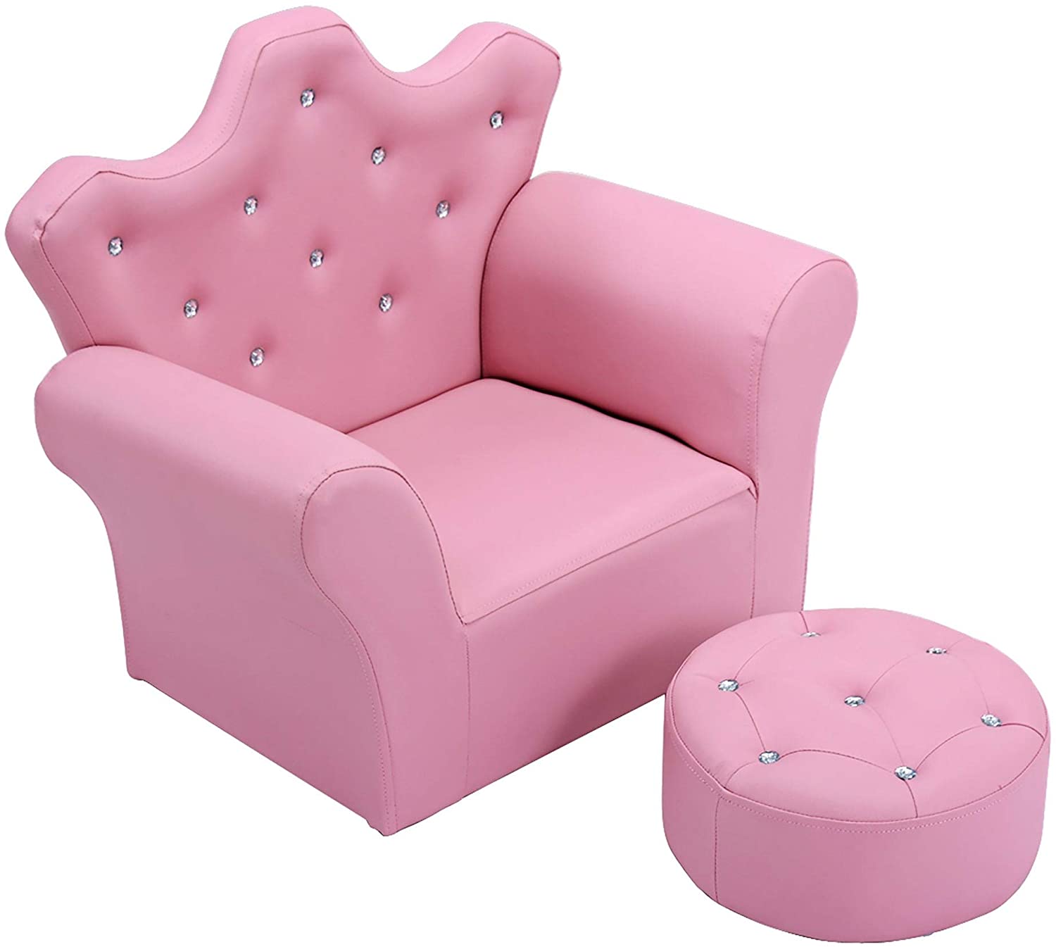 Kids Sofa PVC Leather Princess Embedded Crystal Pink