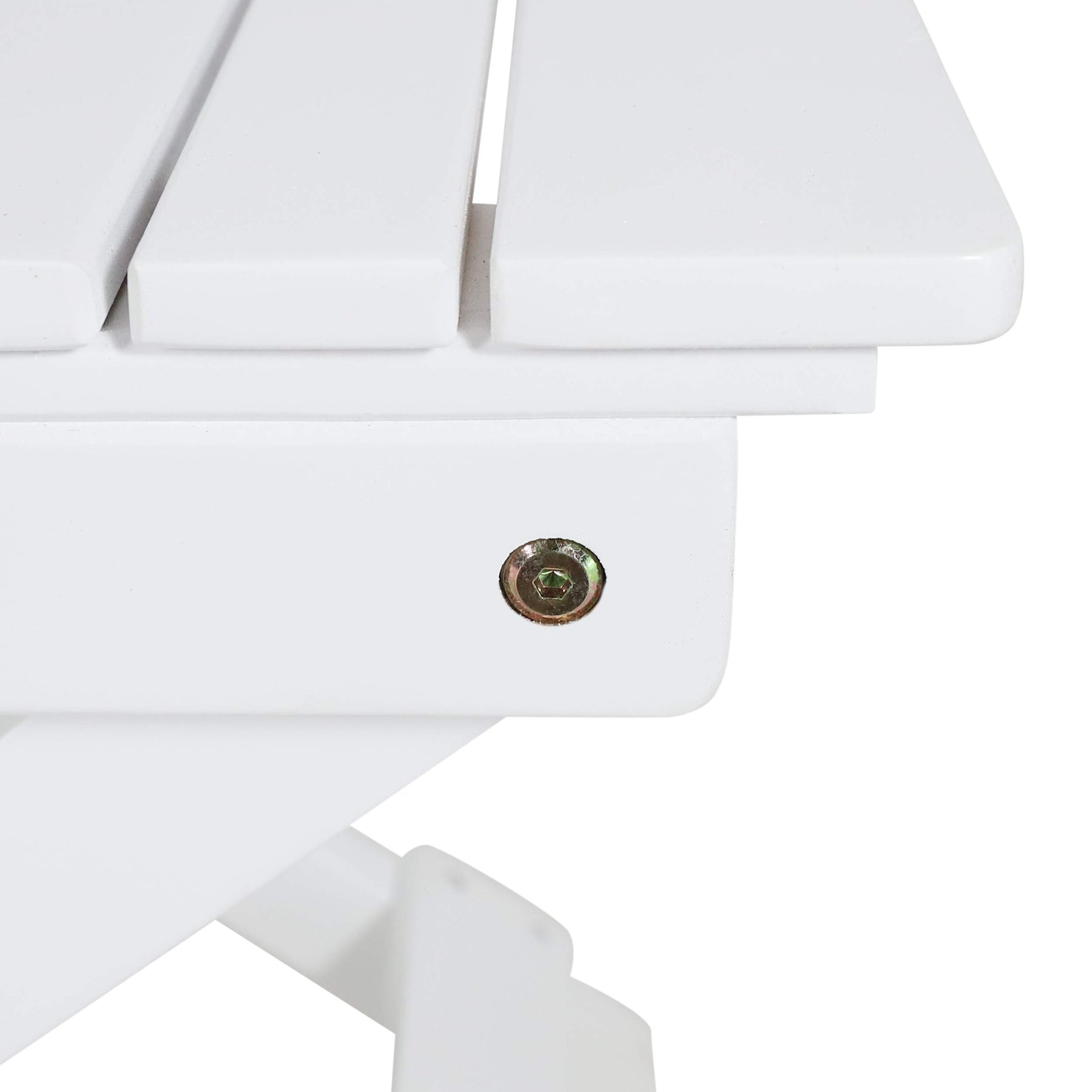 Give your outdoor seating ensemble a perfect companion that you can easily transport or store when not in use. With a classy rustic look, our side table brings a refined touch that is sure to impress guests and family alike. This accessory features stunning slat paneling and a foldable frame to enhance the way you utilize your backyard or patio space. Whether you are placing a chilled drink next to your lounge space or snacking on a plate of refreshments, our side table has you covered. Includes: One (1) Side Table Material: Acacia Wood Finish: White Hand-Crafted Details Assembly Required Dimensions: 15.00 inches deep x 22.75 inches wide x 18.25 inches high