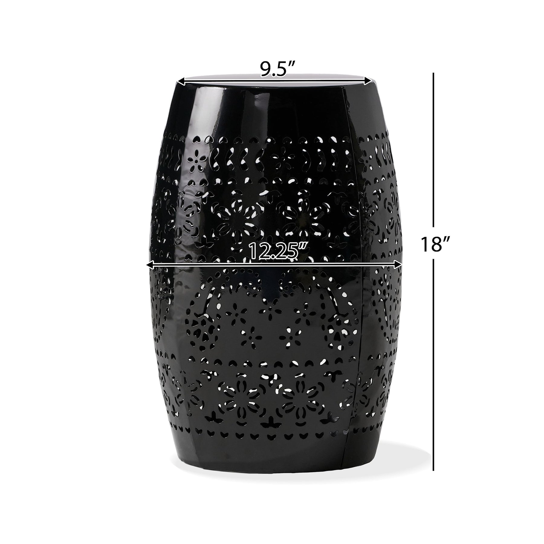 MODERN DESIGN: With clean, precise lines, our side is the ideal modern accessory for your space. Finished with a charming barrel structure and lace-cut design, this table not only offers a chic, minimalistic look but also provides incredible structure. | LACE CUT DESIGN: Refined with a lace cut design, the frame of this table brings an elegant touch to the overall piece, making it an understated yet chic addition to your home. | METAL FRAME: Constructed of powder-coated iron, the frame of this table is made to be incredibly durable, ensuring that this piece will hold up under use. | DIMENSIONS: Choose an accessory that is the perfect size for you and your furniture. This accent table measures to be 12.25” W x 12.25” D x 18.00” H. You will love how much your space can transform with the simple addition of this charming table. | NO ASSEMBLY: This accent table comes ready to use straight out of the box. No assembly is required.