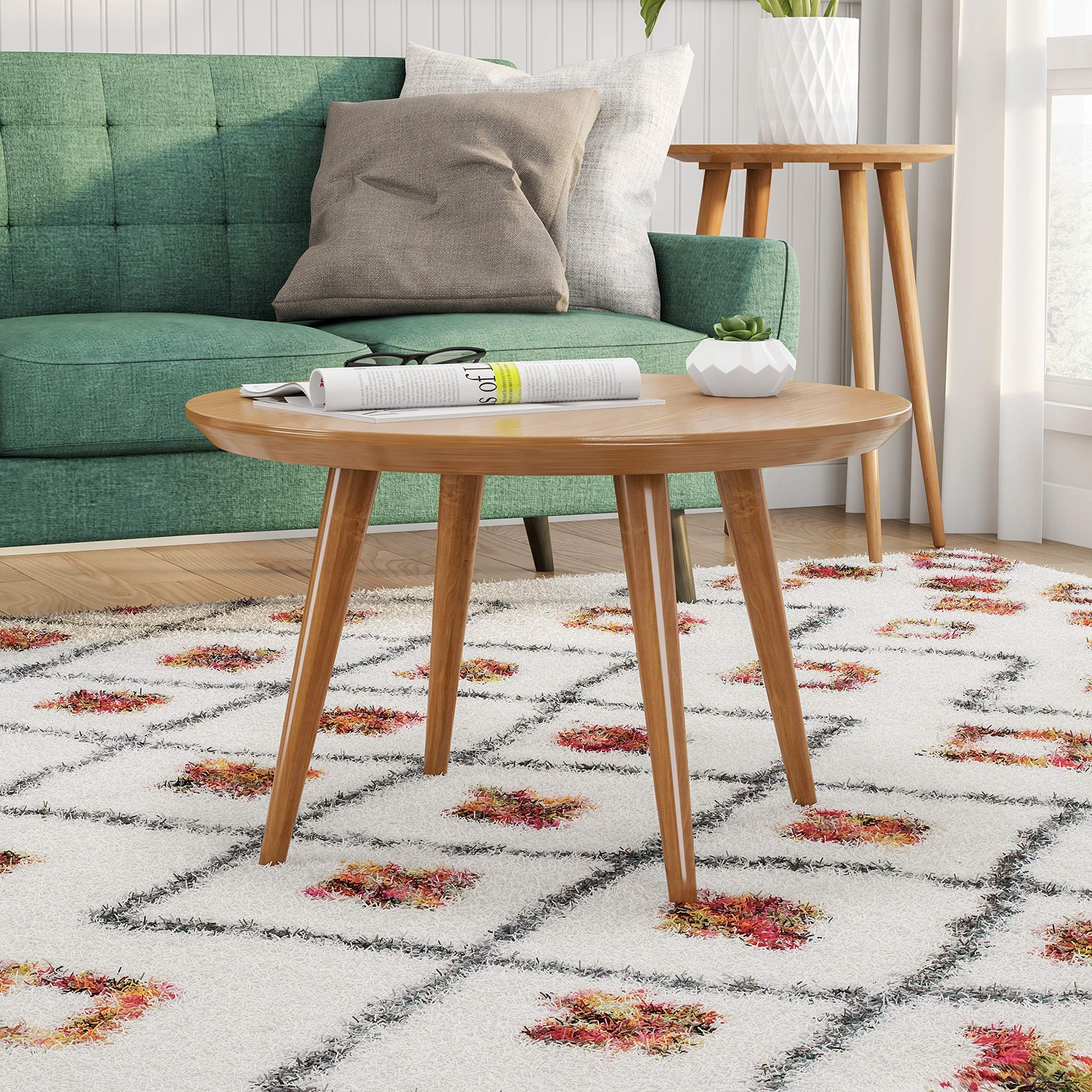 Mid-Century Modern Round Coffee Table with Solid Cherry Wood Top