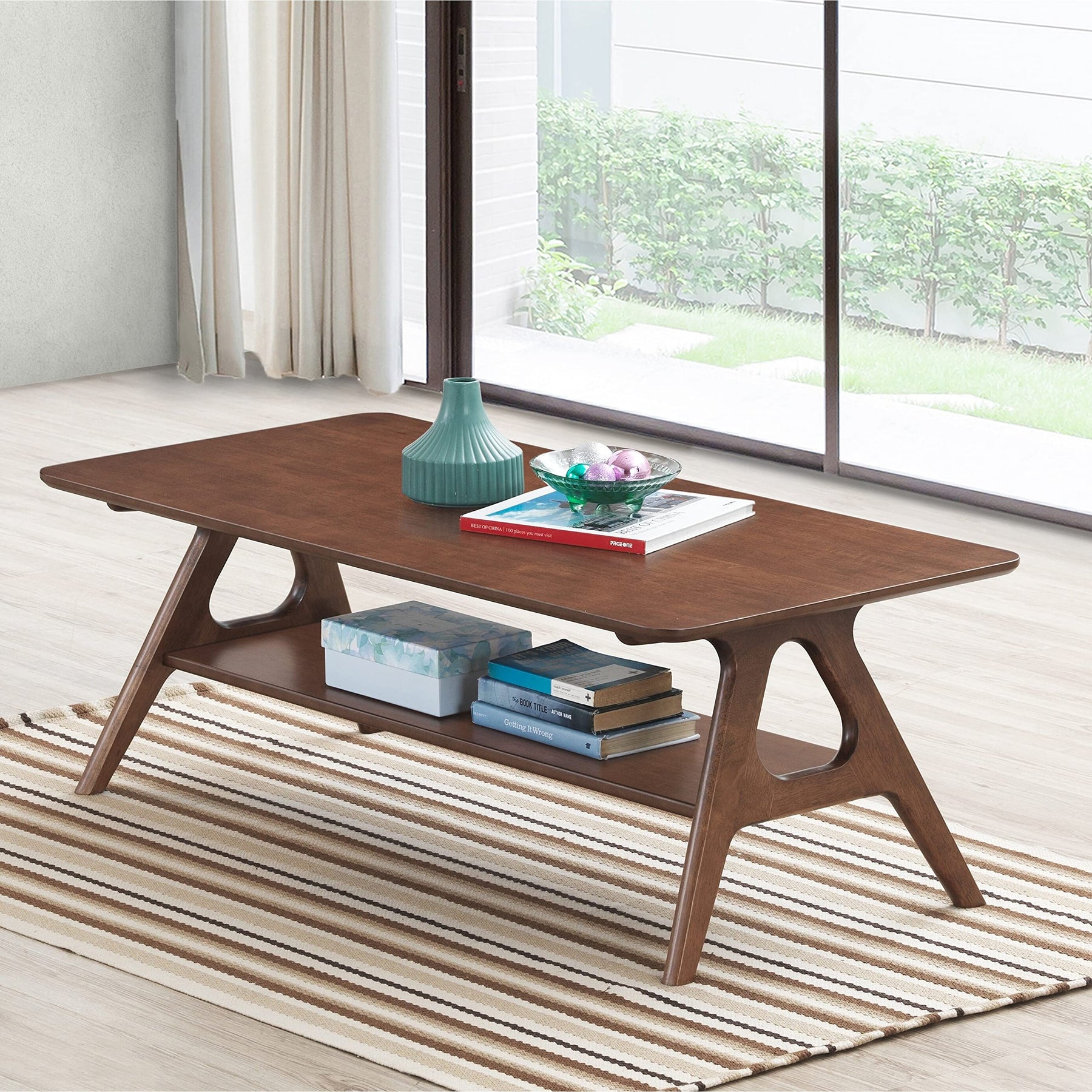 Mid-Century Modern Wood Coffee Table with Shelf Brown Mid-Century Rectangular