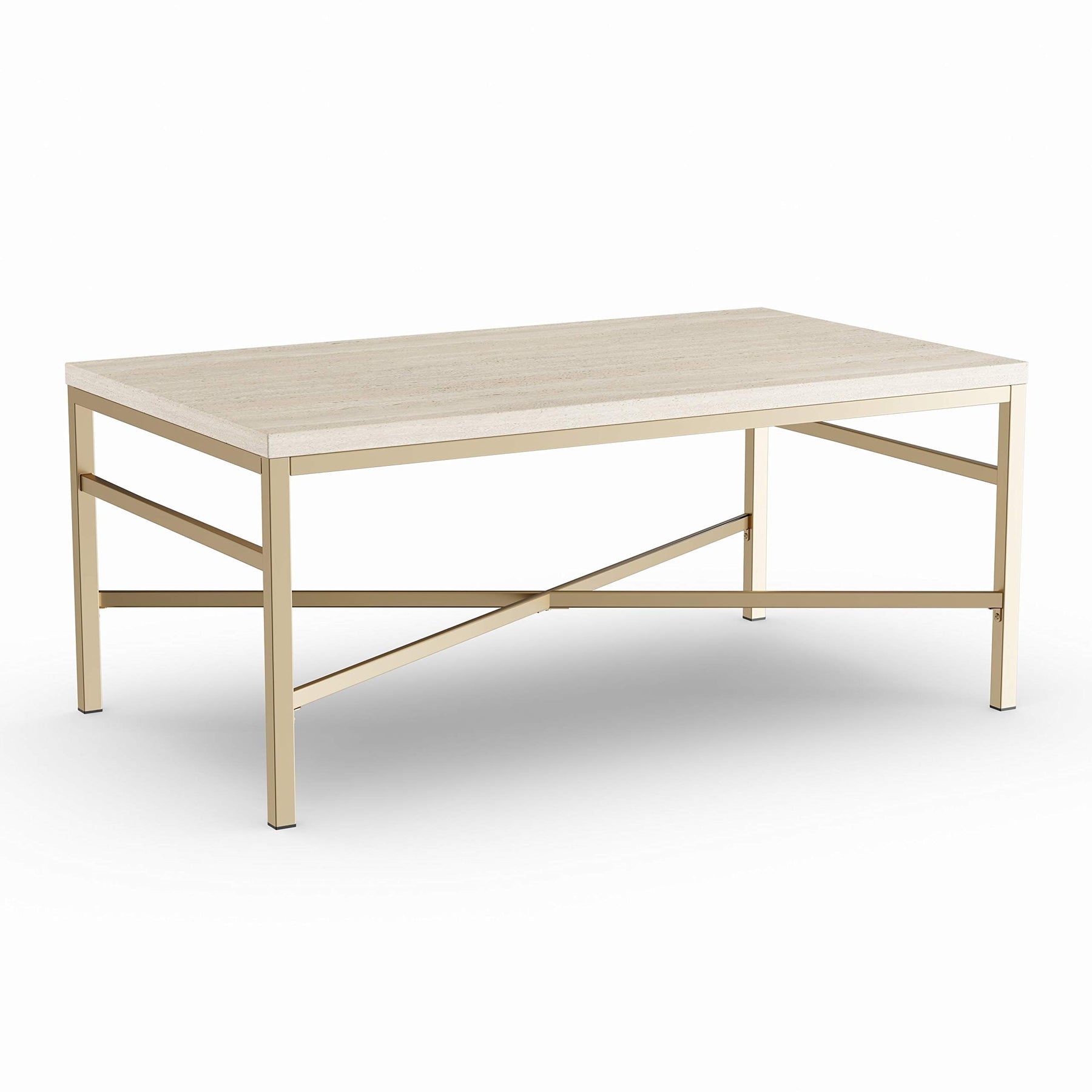 Stone Coffee/Cocktail Table - 42" X 18" Beige Gold Glam