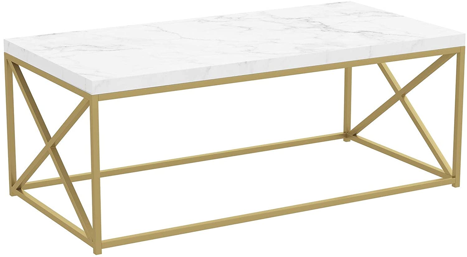 Coffee Table 44l Marble Gold Metal 44' X 22' 17' Color Modern Contemporary Rectangle MDF - Diamond Home USA
