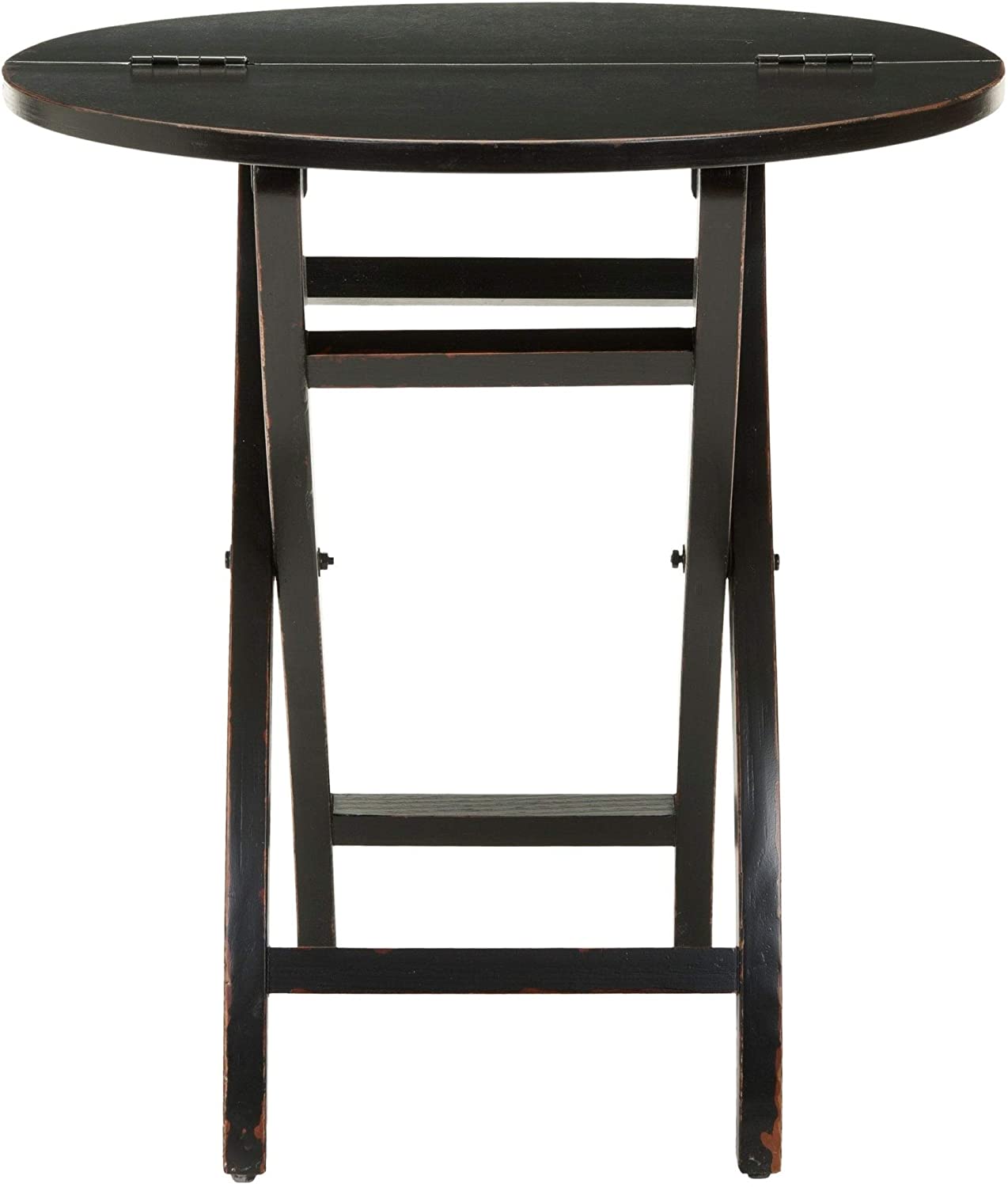 Round Folding Table 0 Black Country Pine Wood Lacquer