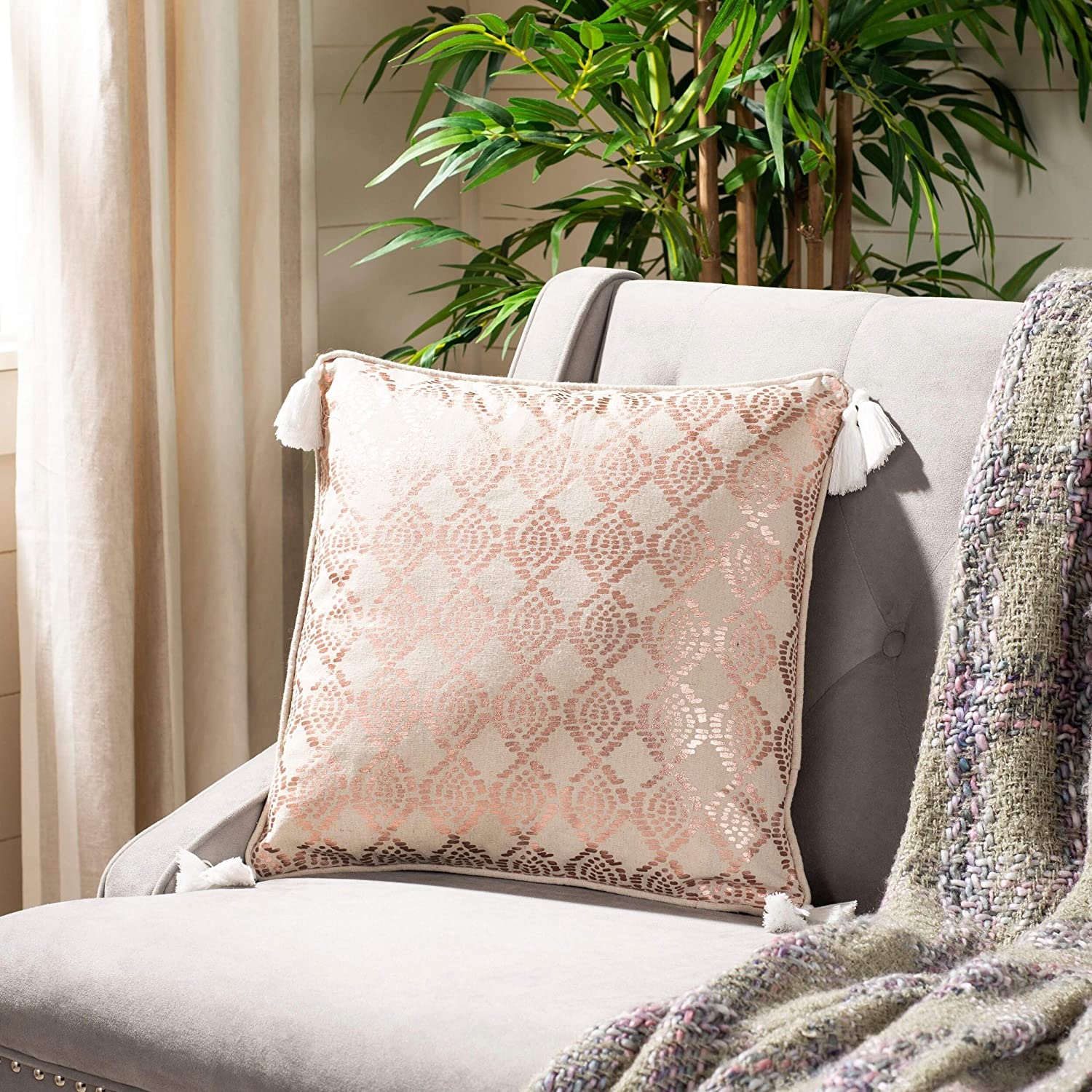 18" Pillow Gold Pink Geometric Modern Contemporary Cotton Single