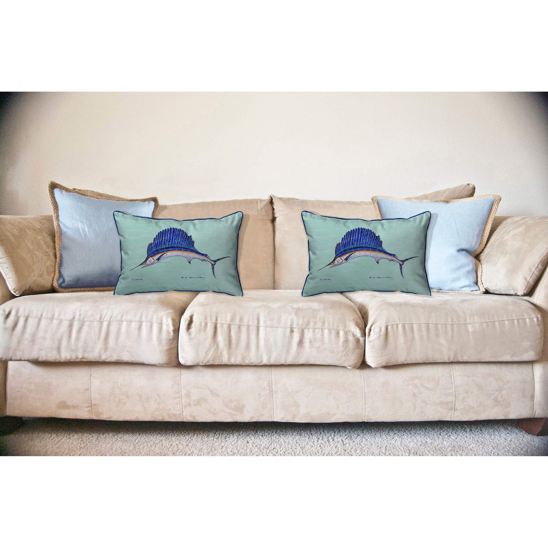 Betsy Drake Sailfish Indoor/Outdoor Pillow 16" x 20" Teal
