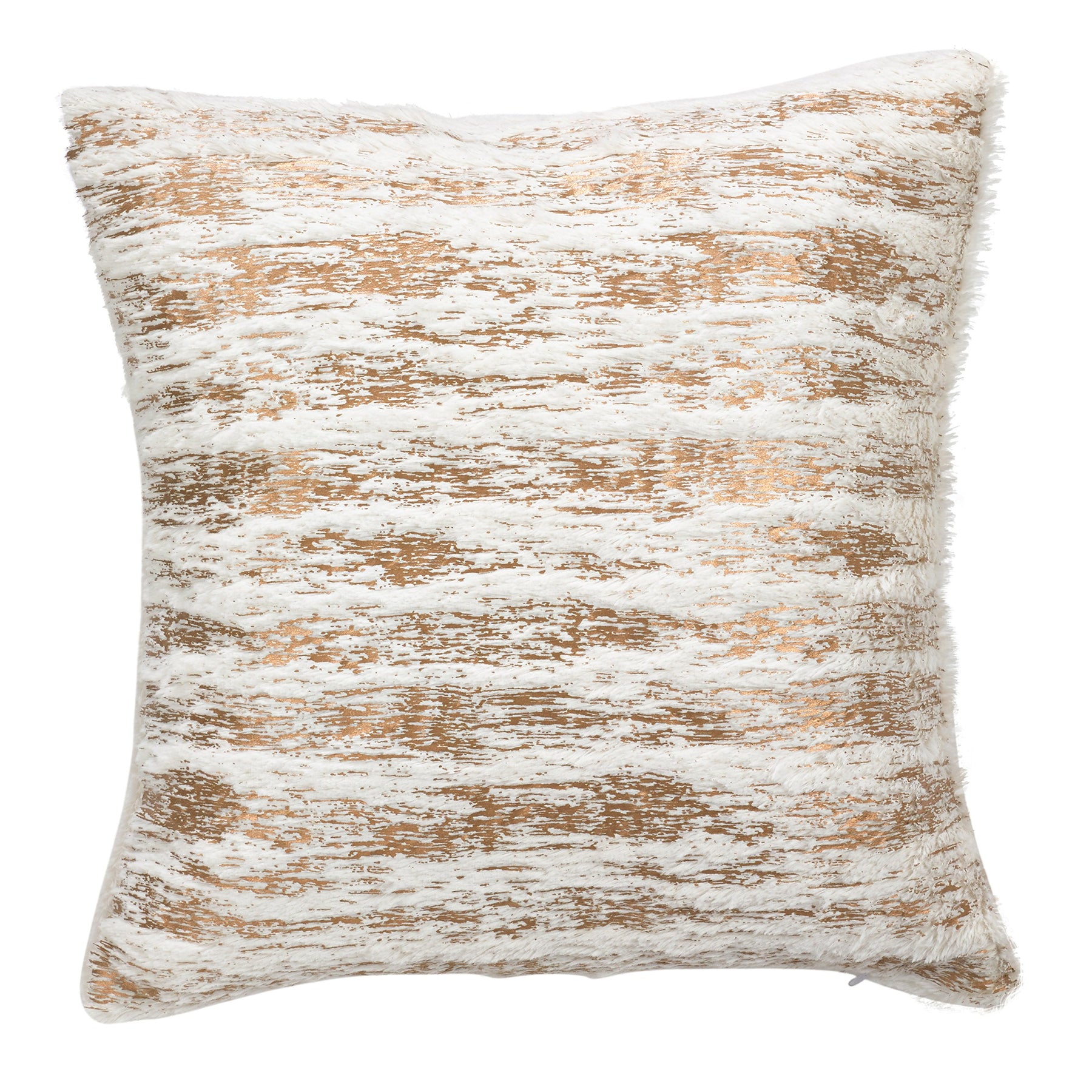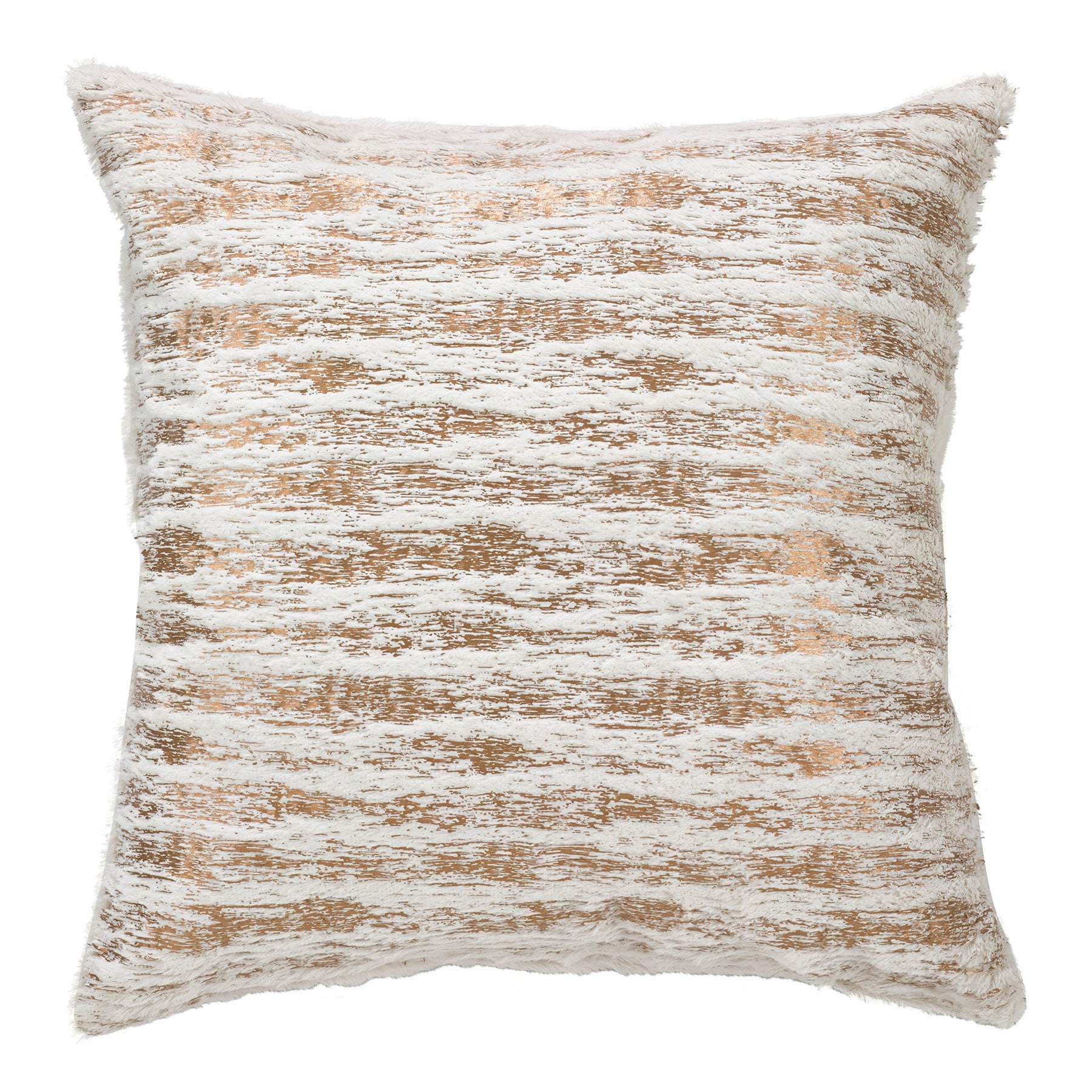 Faux Fur With Brushed Metallic Foil Print Down Filled Throw Pillow