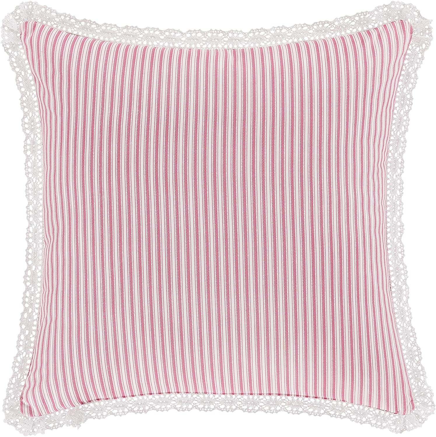 • Includes 1 throw pillow. Lace detail. White and pink color. Reversible pattern. Design/Look : Farmhouse. Material Info: Polyester. Pattern : Floral. Care instruction : Machine Wash. Pillow shape : Square. Color : Pink. Cover material : Polyester. Fill type : Polyester. Lifestage : Adult. Pillow type : Accent. Reversible. Set includes : One Pillow. Product Size : 16.0 In. X 16.0 In. X 0.0 In