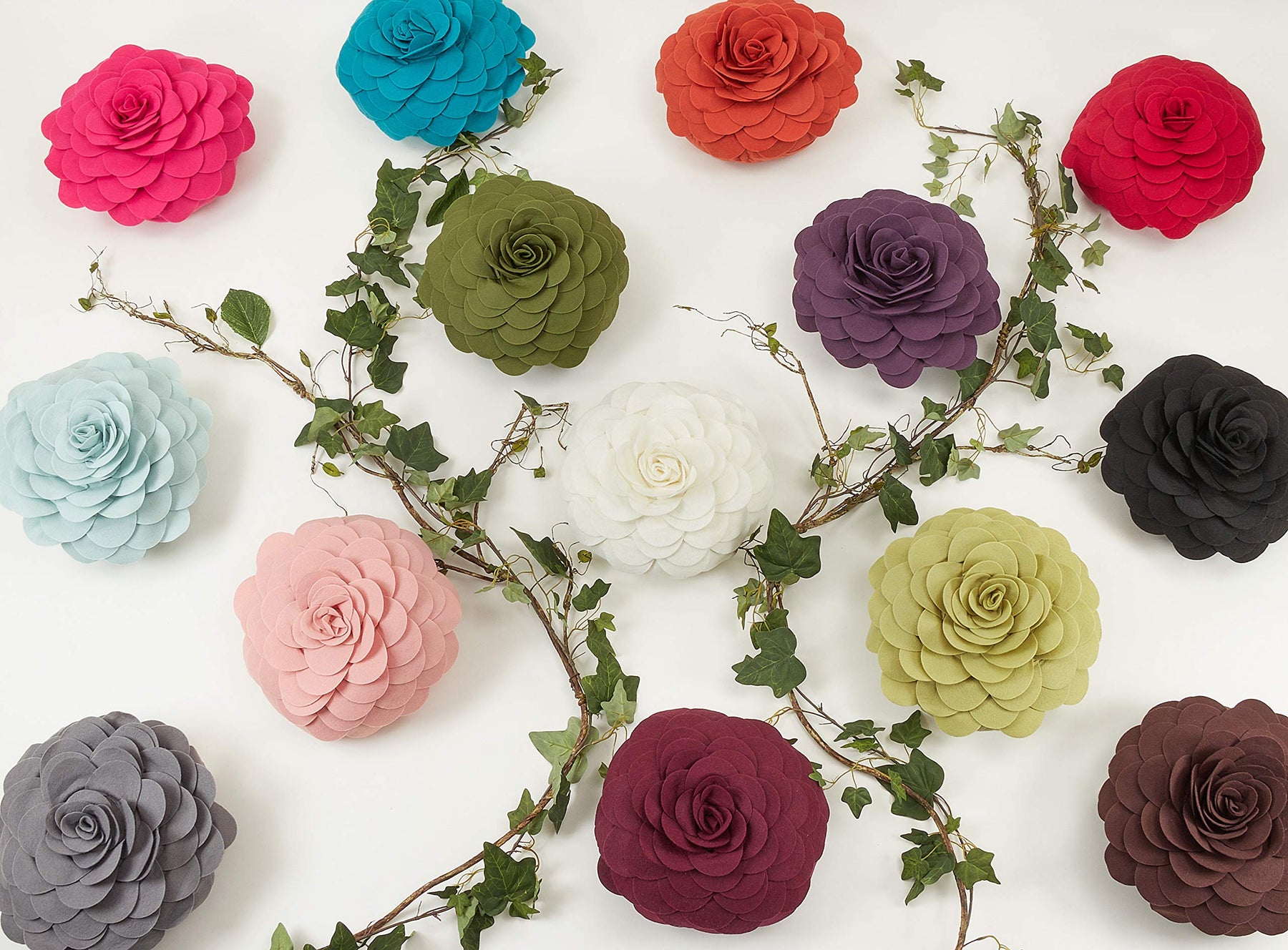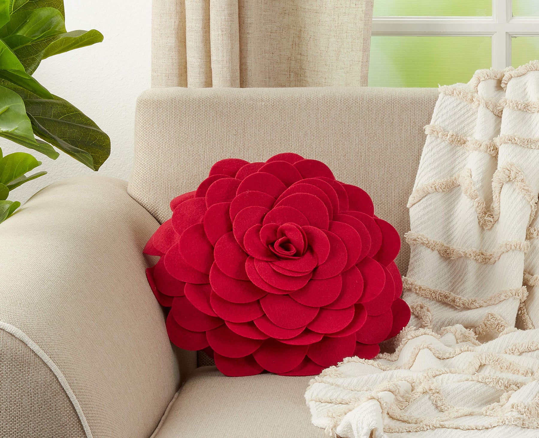 SARO LIFESTYLE Flower Design Poly Filled Throw Pillow Red 16"