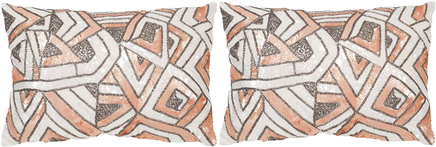 • Throw Pillows (12-inches X 18-inches) (Set Of 2) Multi Color Geometric Glam Polyester Two