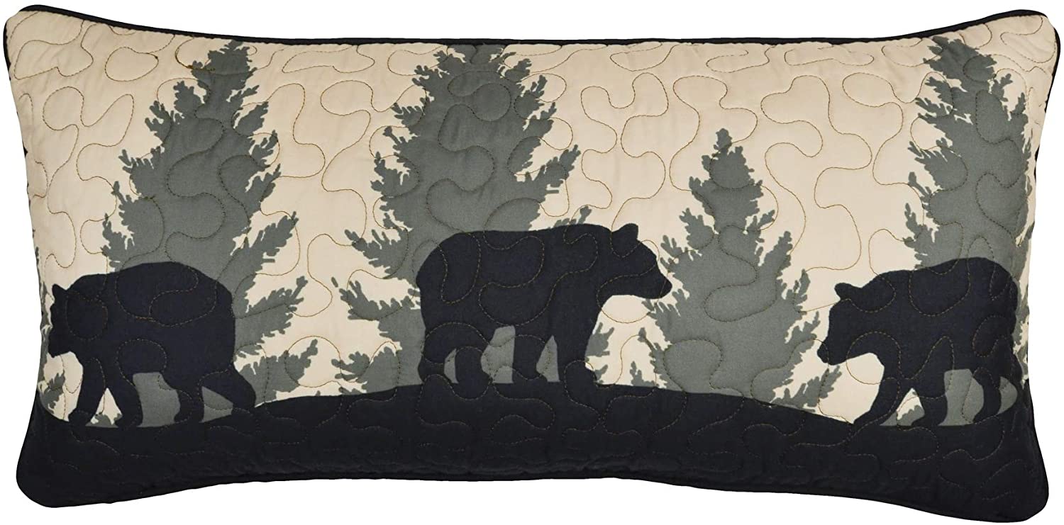 Bear Walk Plaid UCC Rectangle Decorative Pillow Black Animal Cabin Lodge Polyester - Diamond Home USA
