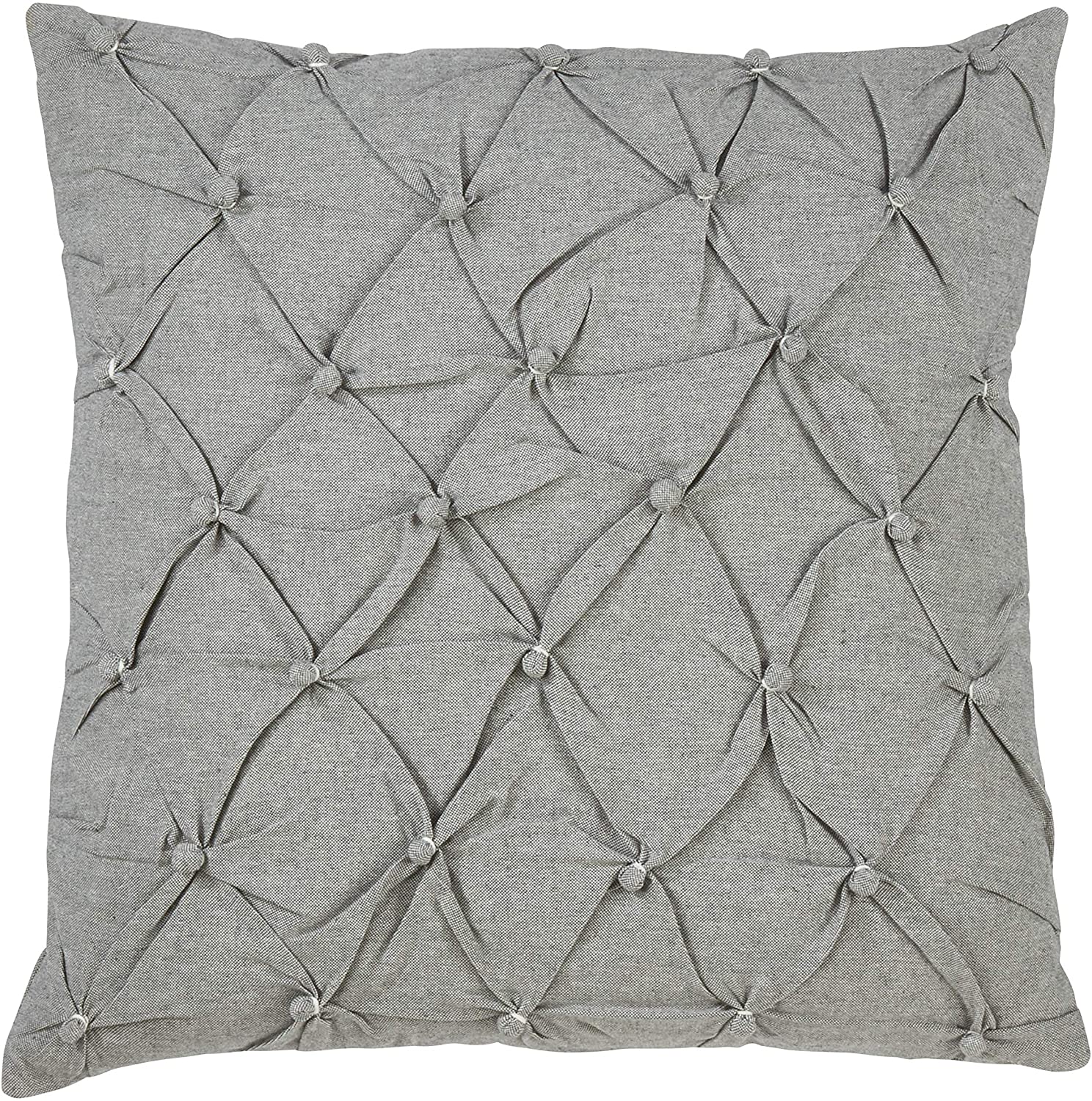 Down Filled Pintucked Button Throw Pillow Grey Textured Mid Century