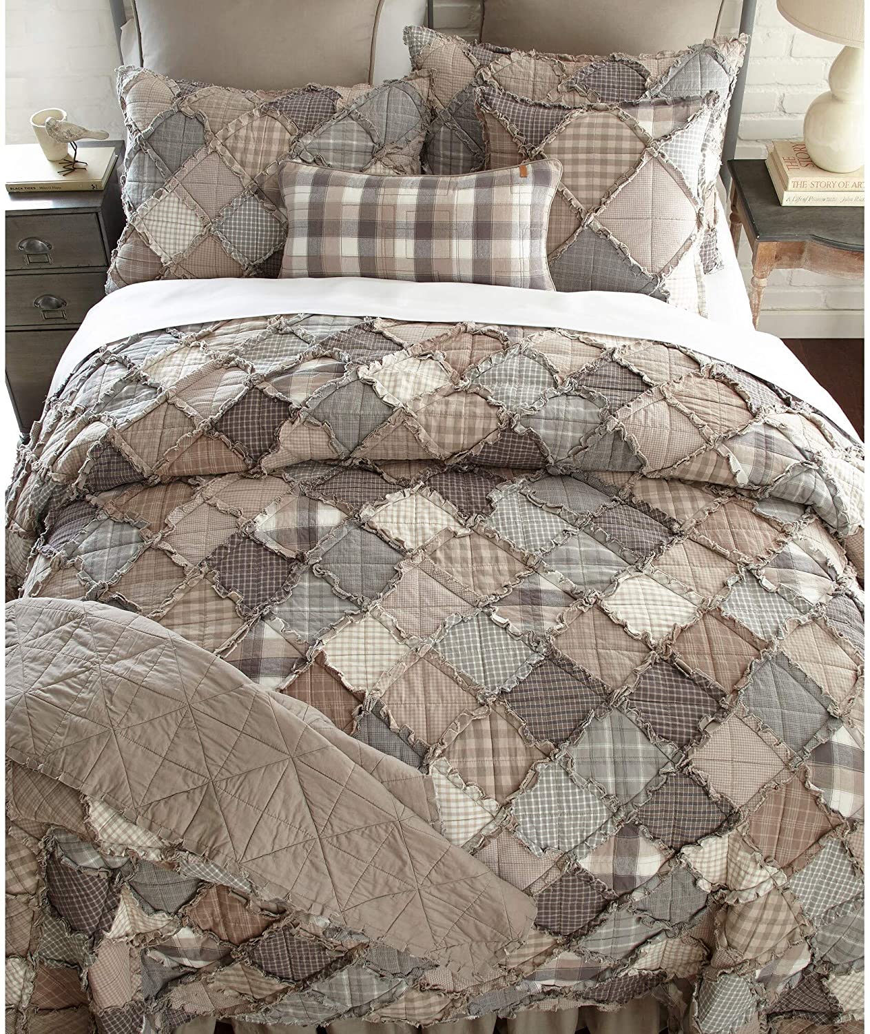 Mountain Rectangle Decorative Pillow Grey Patchwork Farmhouse Cotton Removable Cover
