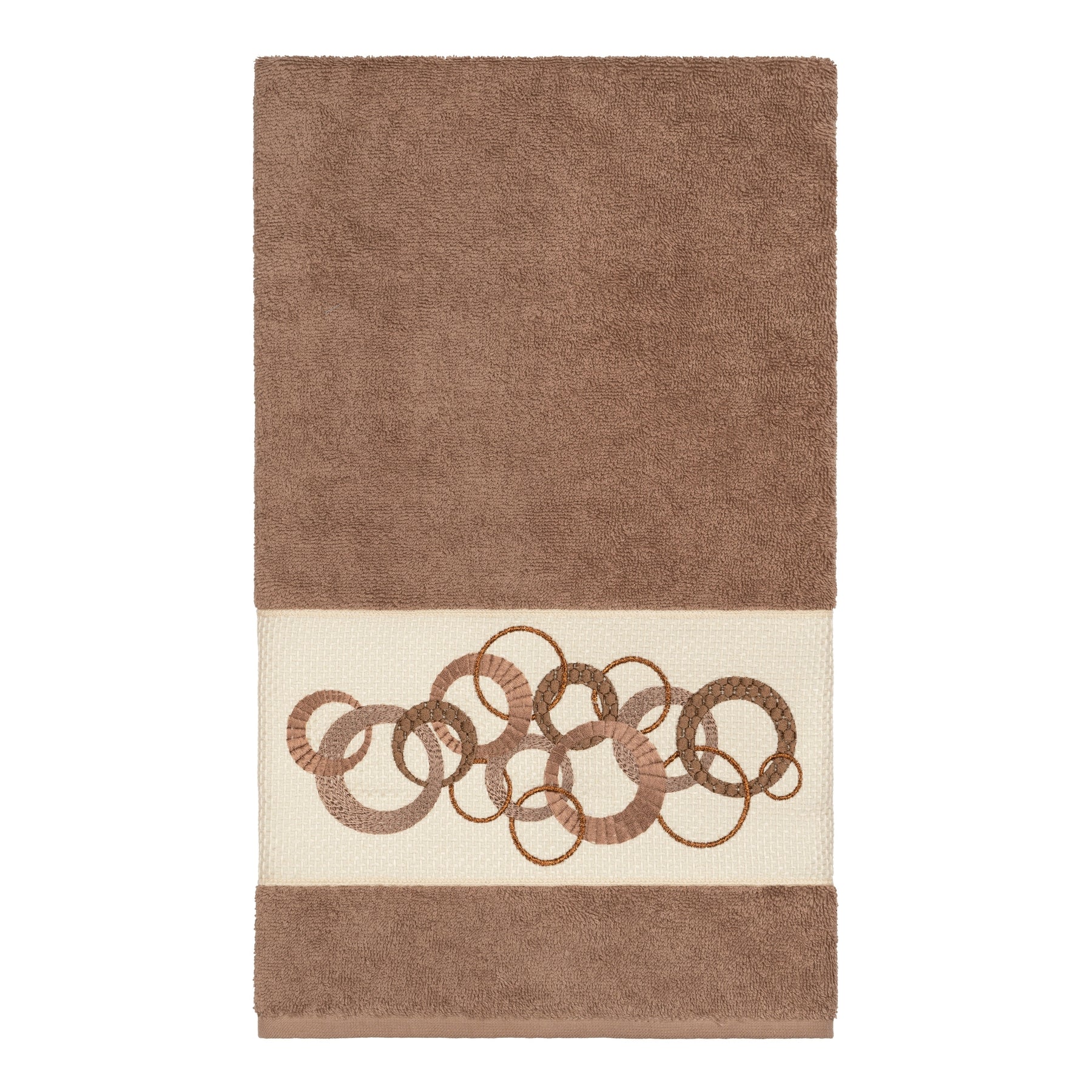 Turkish Cotton Circles Embroidered Latte Brown 8-piece Towel Set Terry