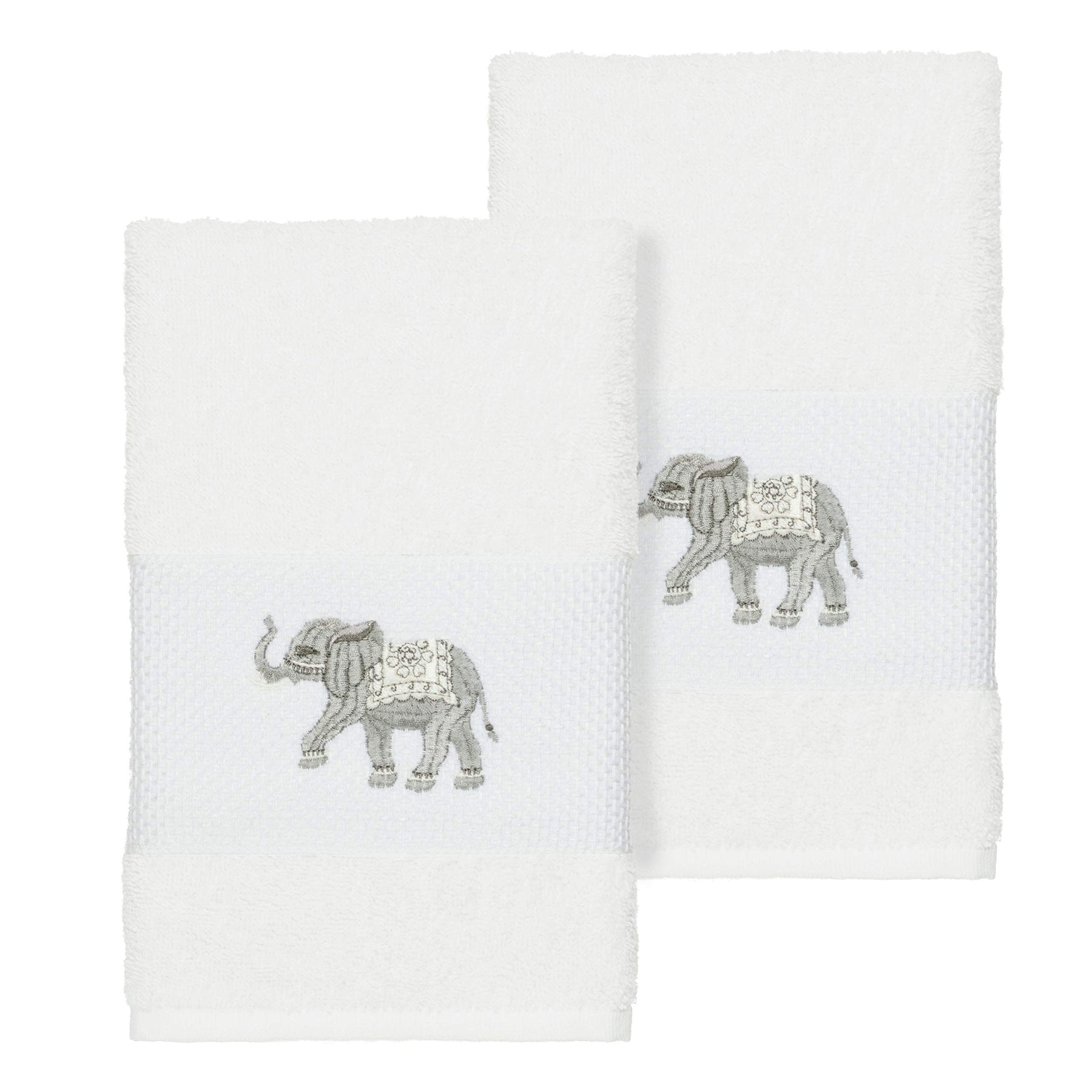 Authentic Hotel and Spa Turkish Cotton Elephants Embroidered White 2-Piece