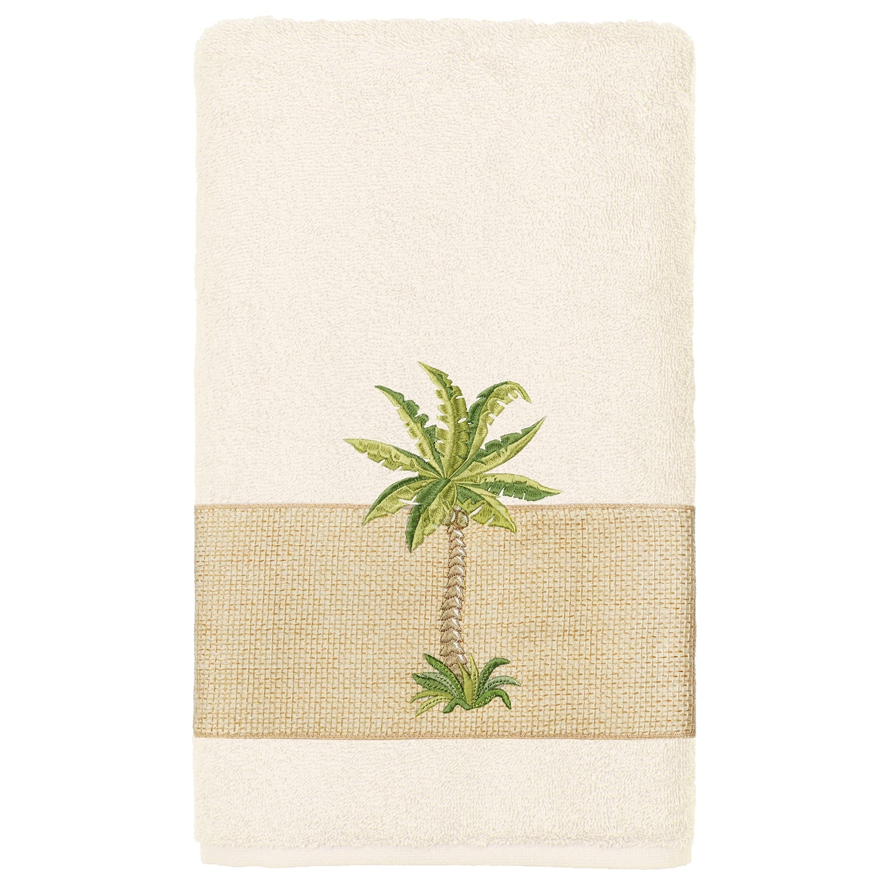 Authentic Hotel and Spa Turkish Cotton Palm Tree Embroidered Cream