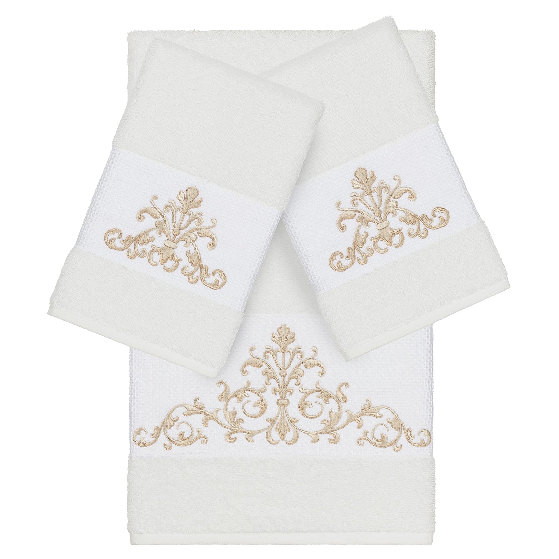 Authentic Hotel and Spa White Turkish Cotton Scrollwork Embroidered 3