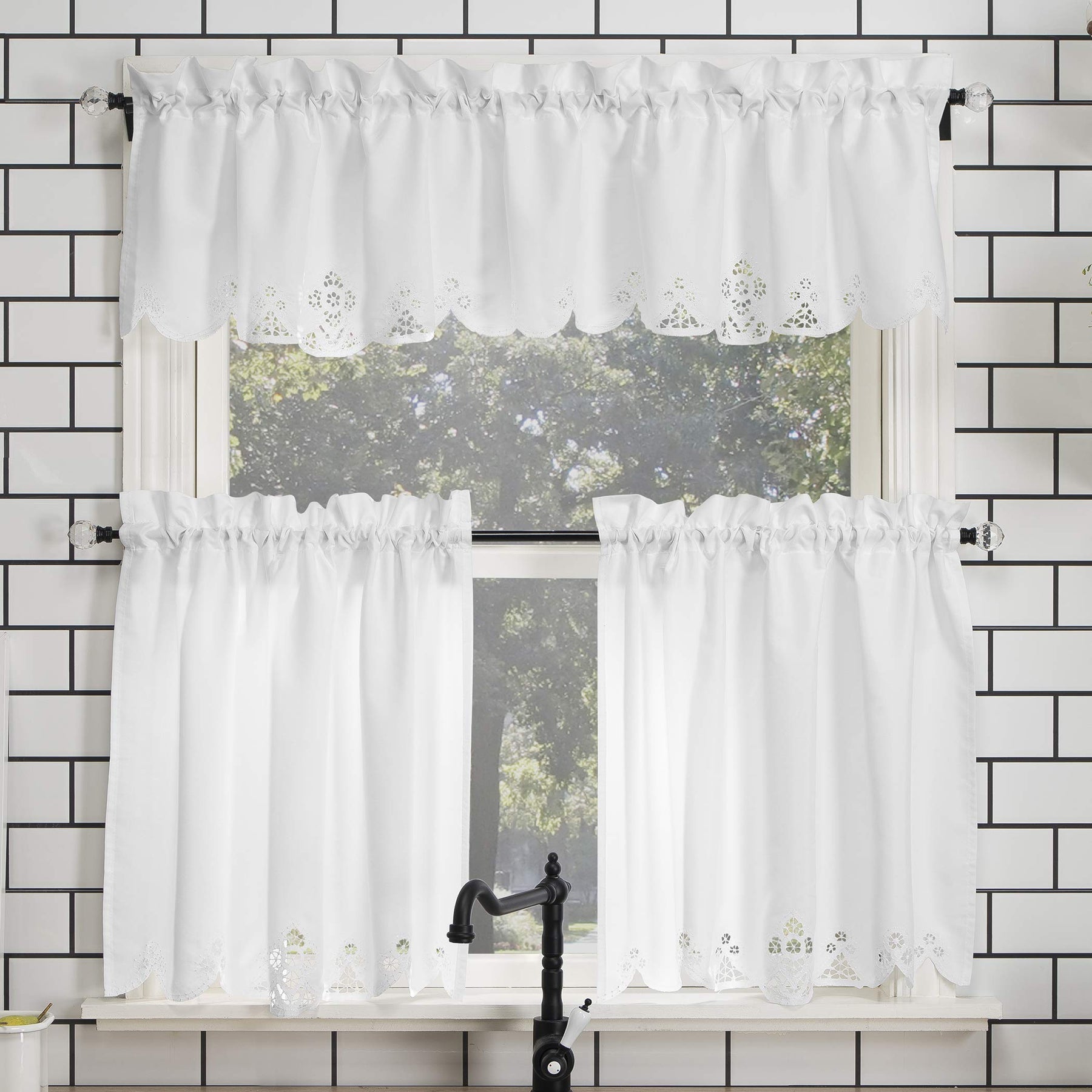 No. 918 Mariela Floral Trim Semi-Sheer Rod Pocket Kitchen Curtain