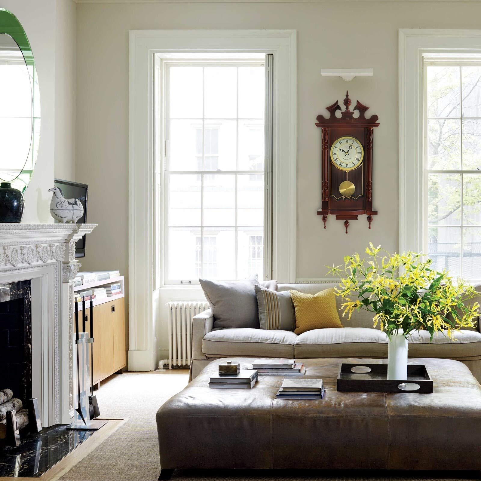 Decorative 31 inch Chiming Wall Clock W/Pendulum Red Rectangular Wood Cherry - Diamond Home USA