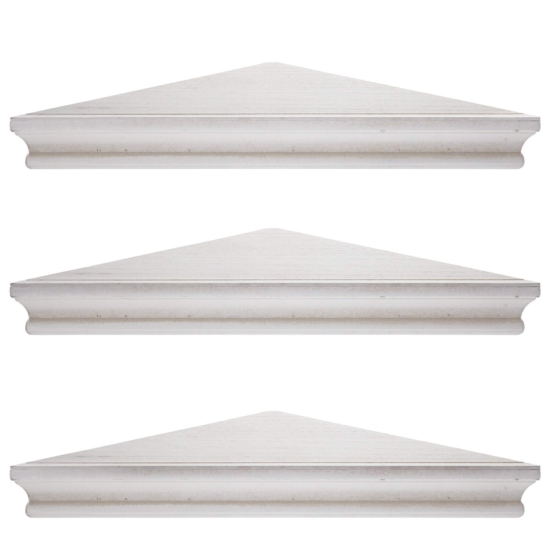 Whitewashed Wood Floating Corner Shelves (Set Of 3) White Mdf Storage | SET OF 3 SHELVES - With three shelves available for ample storage options, you can really clean up clutter and manage messes around the home with these stylish, space-saving floating shelves. FLOATING CORNER SHELVES - Create wonderful storage solutions for your home with floating shelves that hide unsightly brackets and keep your wall space looking clean, tidy, and clutter-free. Material Info: MDF. Accent type : Floating Shelves. Color : White | Dimensions : 16.5 In. X 8.25 In. X 2.25 In. RUSTIC DECOR - Whitewashed wood combines with a weathered and distressed wood treatment to give this piece a truly rustic, farmhouse Design/Look aesthetic. READY TO HANG - Fully equipped with a mounting bracket, drywall anchors, screws and a level, this set of shelves also includes instructions for hanging.