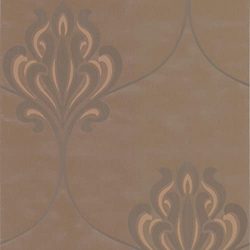 Brown Damask Wallpaper Modern Contemporary Paper Washable