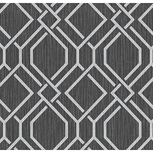 Charcoal Trellis Wallpaper Grey Geometric Traditional Vinyl Washable