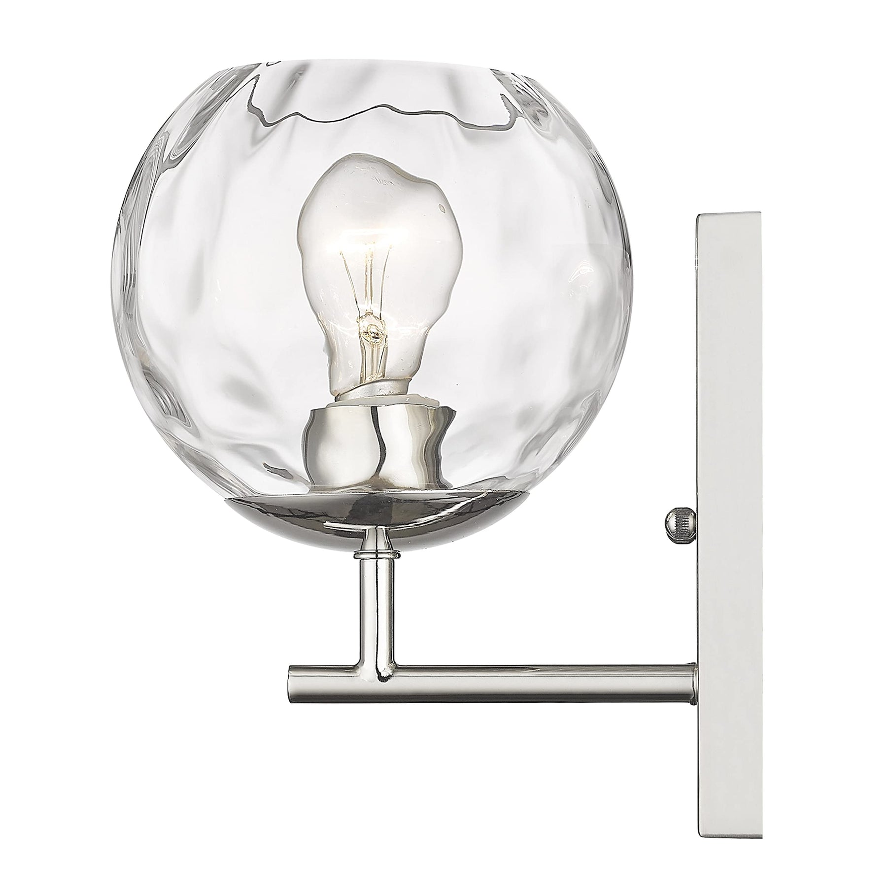 1-Light Polished Nickel Bath/Vanity Fixture W/Water Glass Silver Glam Modern