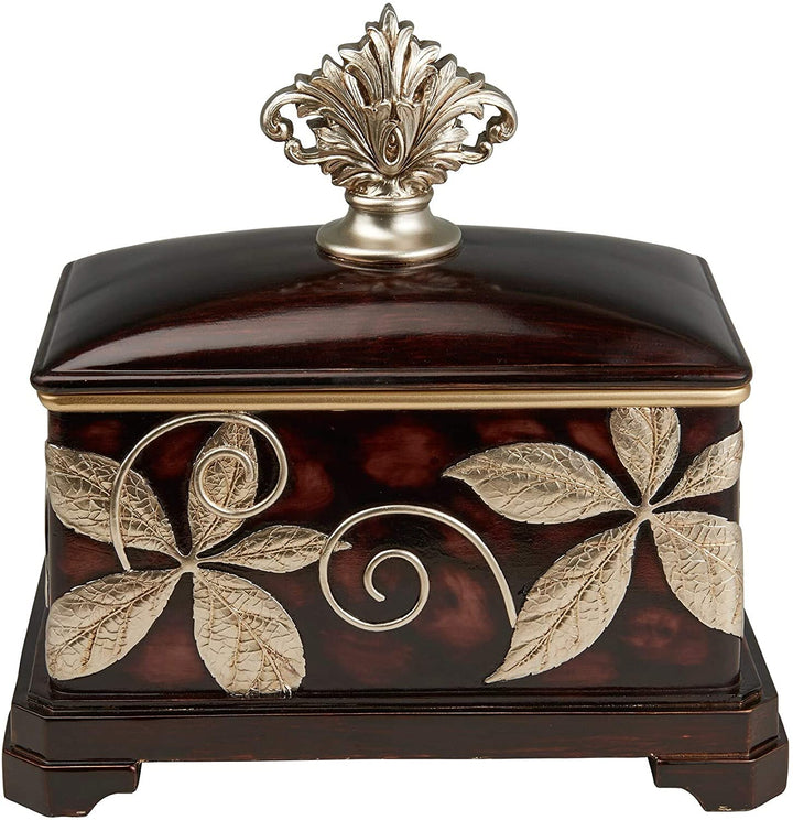 11 5 Floral Foliage Jewelry Bowl Box Brown Polyresin