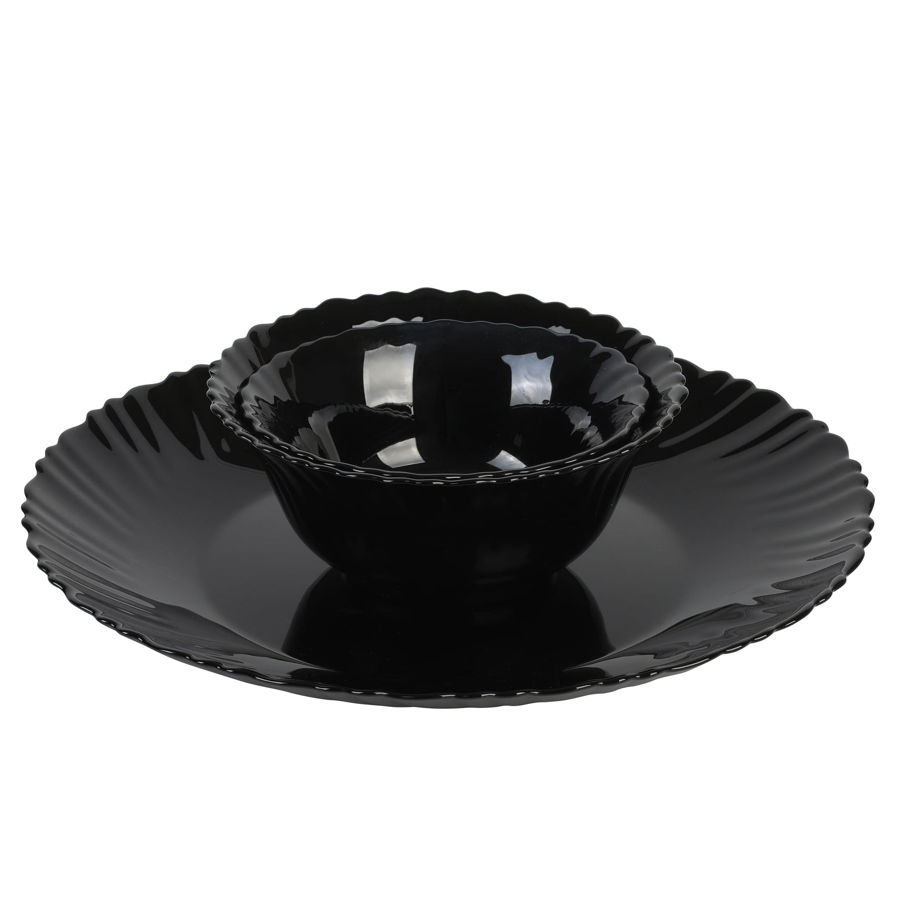 12 Piece Glass Dinnerware Set Black Textured Modern Contemporary Round