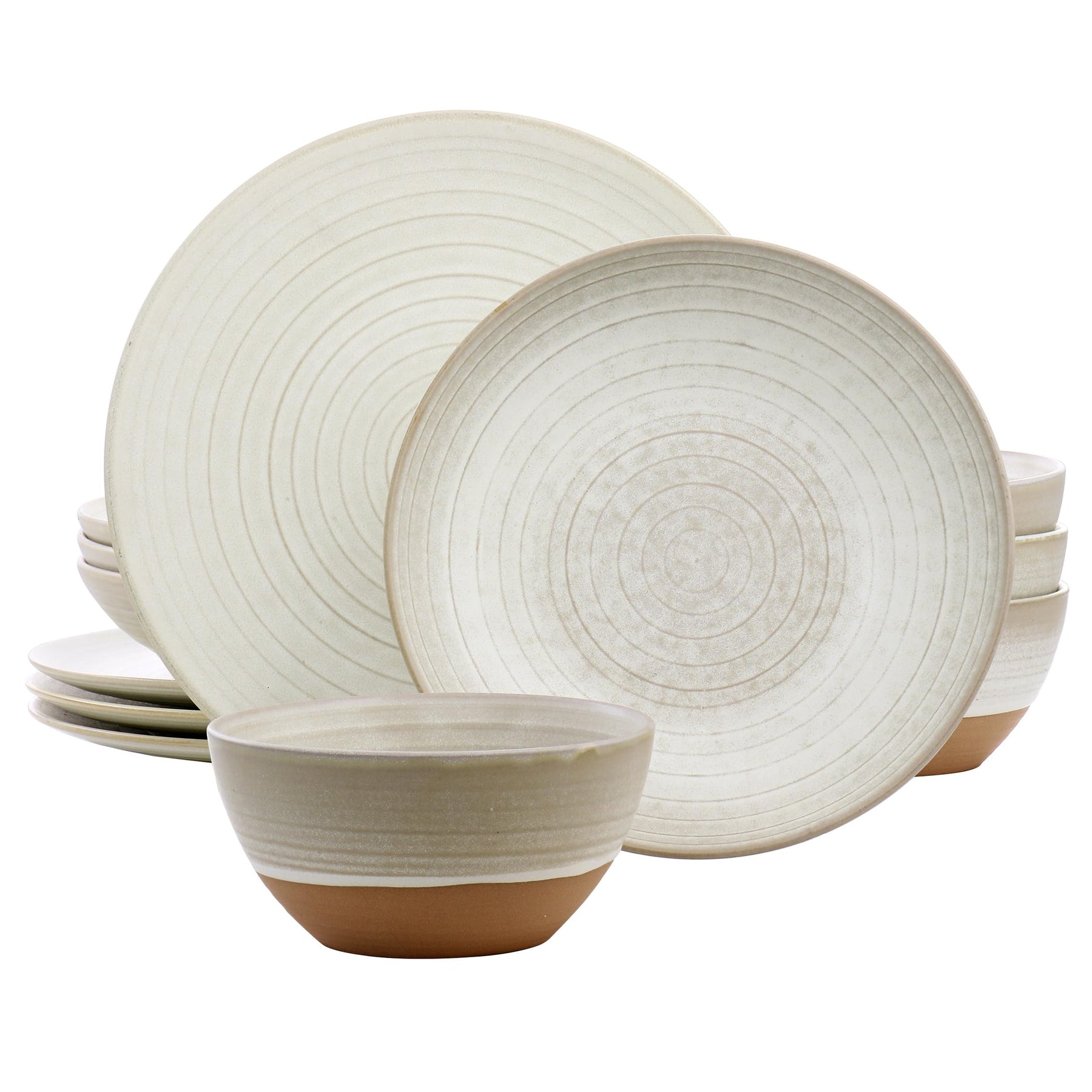 12 Piece Round Dinnerware Set In Matte White Textured Casual
