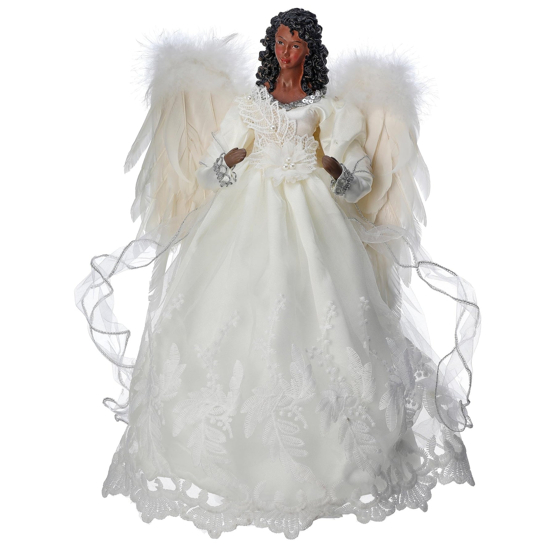 16" Fabric with Lace Black Angel Tree Topper Beige Polyester